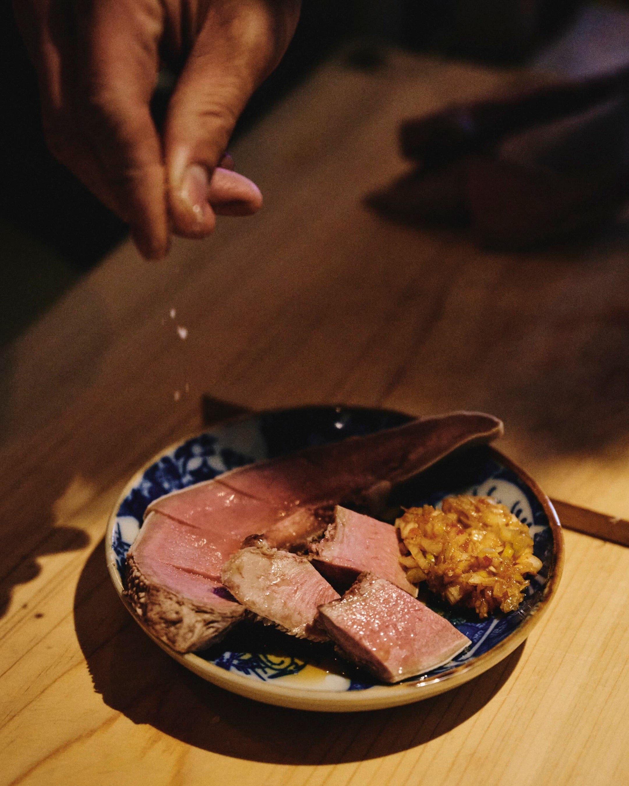 不定期で扉が開く、角打ちのような酒場。鉄板を囲み、初対面同士でも自然と会話が生まれる空気感が魅力だ。本企画では〈ネクタロシティ〉のハイボールをセレクト。鉄板で焼いた「ホルモン焼き」と合わせ、脂と甘辛いタレに蜜のような甘さが重なる。仕上げの実山椒が香りの軸を切り替え、場の熱量と無理なく並走する一杯となっている。