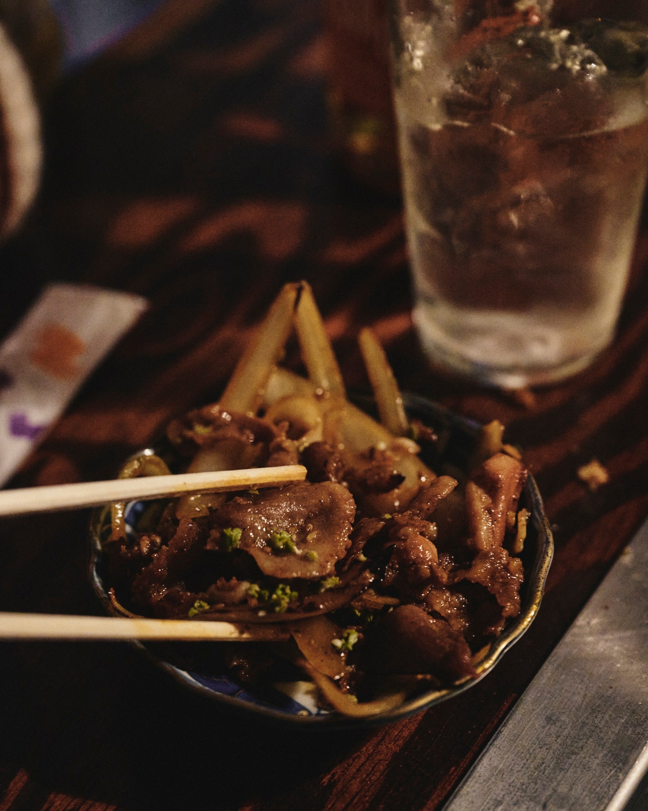 鉄板を囲み、料理と会話が同じ速度で進んでいく酒場。祖母の代から続くレシピと空気感を、店主が自然体で受け継いでいる。本企画では〈ネクタロシティ〉のハイボールをセレクト。「自家製焼豚」に目玉焼きを添えた一皿と合わせ、脂と卵のコクにウイスキーの甘さが重なる。香ばしい鉄板料理の前で、酒が前に出すぎることなく、会話とともに軽やかに楽しめる一杯として機能している。