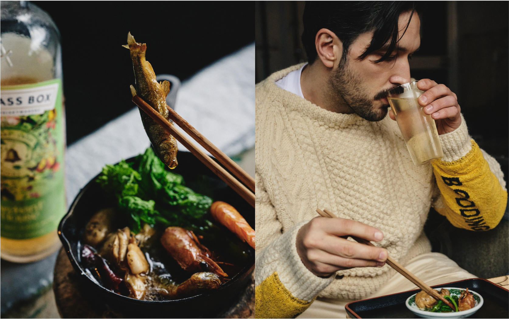京都の昼酒文化を象徴する一軒。「赤垣屋」の4代目店主が営み、七輪や生簀を活かした料理と酒を提供している。本企画では〈オーチャード ハウス〉をハイボールで提案。イギリスでも手に入りやすい食材で、ラベルデザインのカラーを意識したという「菜の花、川魚、海老、牡蠣のオイル煮」を合わせ、果実味と酸が油をきれいに切る。食材が重なっても味が濁らず、昼酒の流れの中で自然と手に取られる一杯となっている。