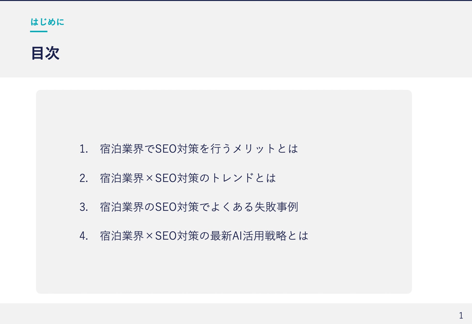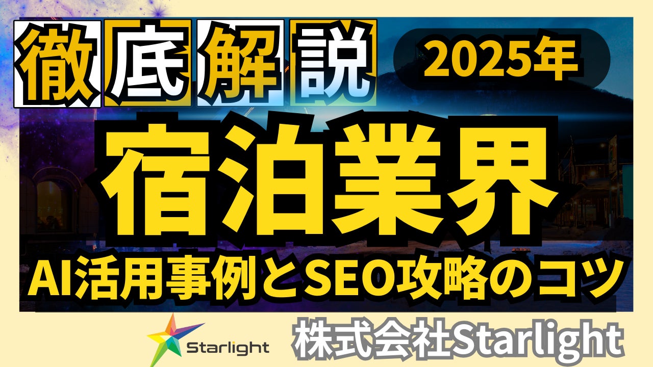 株式会社Starlight(本社:東京都豊島区、代表取締役社長:黒田 真乃介、以下「当社」)は、宿泊業界の皆様を対象に「2025年版 宿泊業界向けAI×SEOトレンドレポート」を公開いたしました。本レポートは、宿泊業界がSEOを活用して集客を強化するための最新事例や成功パターン、そして成果に直結する戦略的なAI×SEOノウハウを一冊に集約しています。