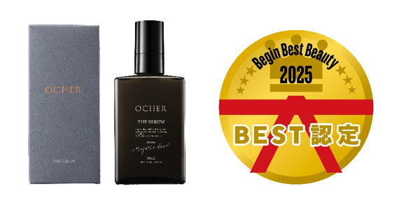 株式会社オーカー(本社:東京都目黒区、代表取締役:服部 広毅、以下オーカー)が展開するメンズコスメブランド「OCHER(オーカー)」のオールインワンセラム「OCHER THE SERUM」が、Begin 9月号「Begin Best Beauty2025」のBEST認定を受賞しました。これまでオーカーでは高機能な商品をつくるだけではなく、スキンケアは自宅で朝や夜の洗顔後に行うものという常識を変えるべく、場所やシーンを問わず男性の肌をサポートする新たなスキンケア習慣を提案してきました。本受賞を機に、男性のスキンケア習慣の更なるアップデートを進めてまいります。