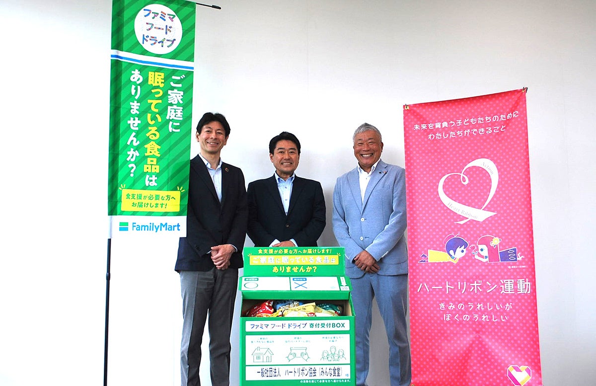 集まった食品は、ファミリーマートが取り組んでいる「ファミマフードドライブ」実施店舗に持ち込み、食品回収のパートナーである一般社団法人ハートリボン協会(東京都港区、理事長:田中正志、以下ハートリボン)を通じて、地域で食支援が必要な方々へお届けすることをお知らせいたします。