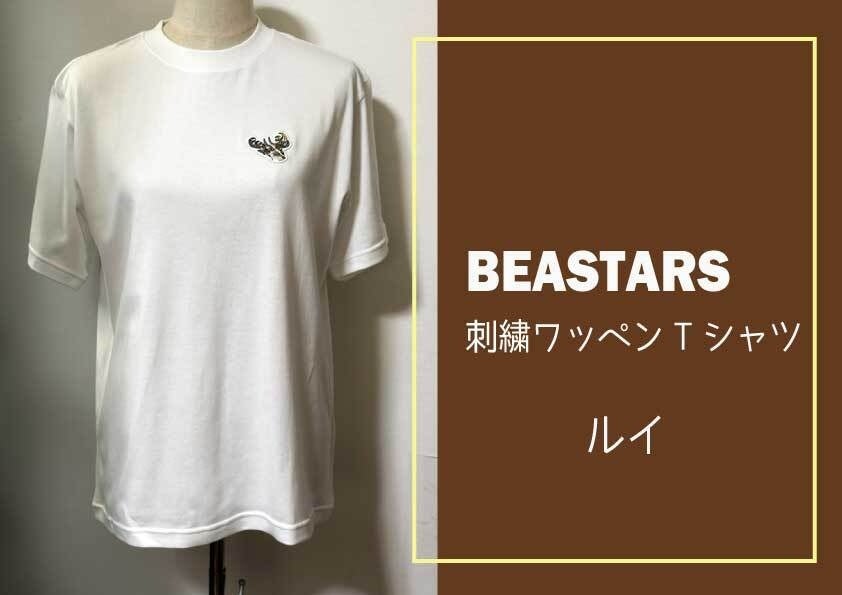 Tシャツは『BEASTARS』より「レゴシ」と「ルイ」の2種展開。左胸には、キャラクターの顔を刺繍で表現したワッペンが縫い付けられ、背面の襟下には「BEASTARS」のロゴがプリントされています。
