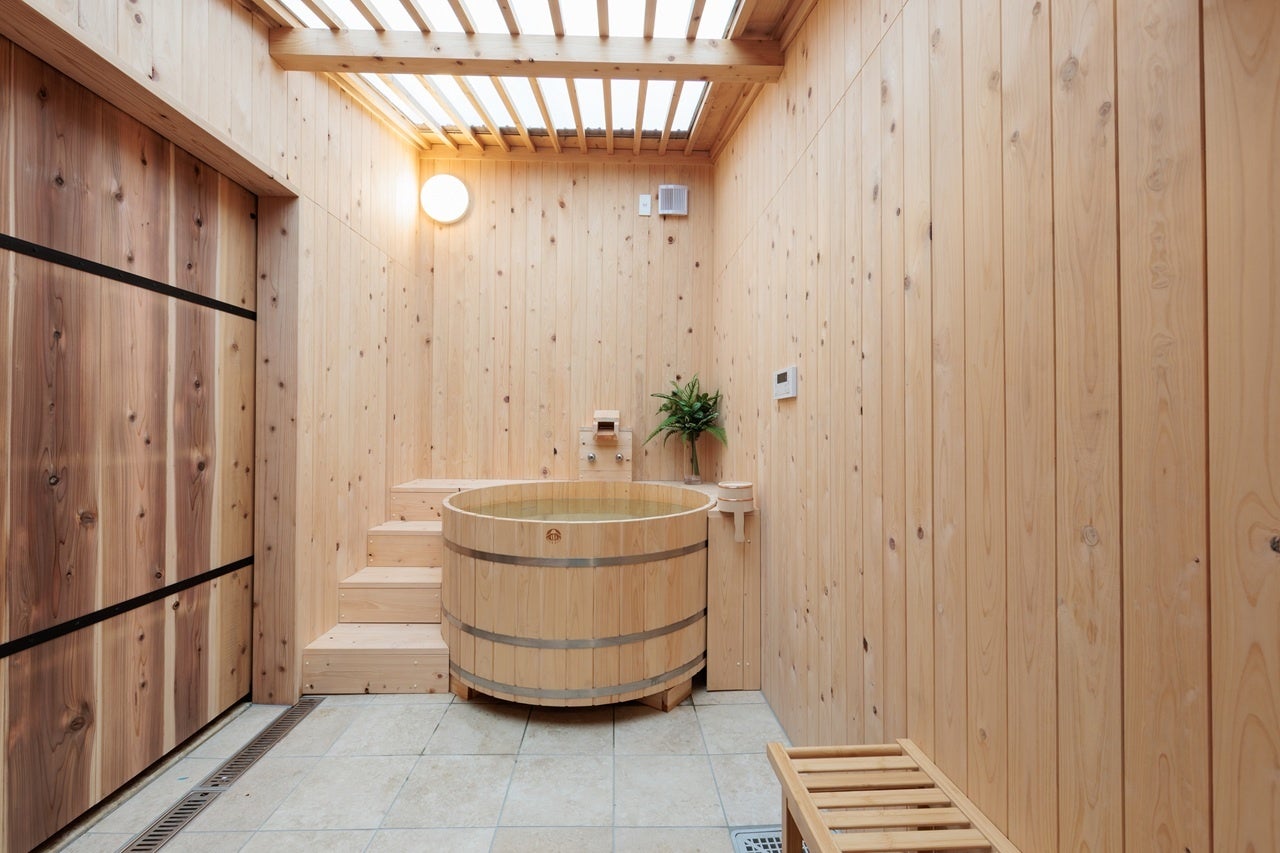路地の一角に佇む古民家民泊の「穂庵(HOAN)」は、日本でも珍しくなりつつある檜風呂を備えています。木の香りに包まれながら湯に浸かる時間は、まるで森林浴をしているかのような感覚を生み出します。