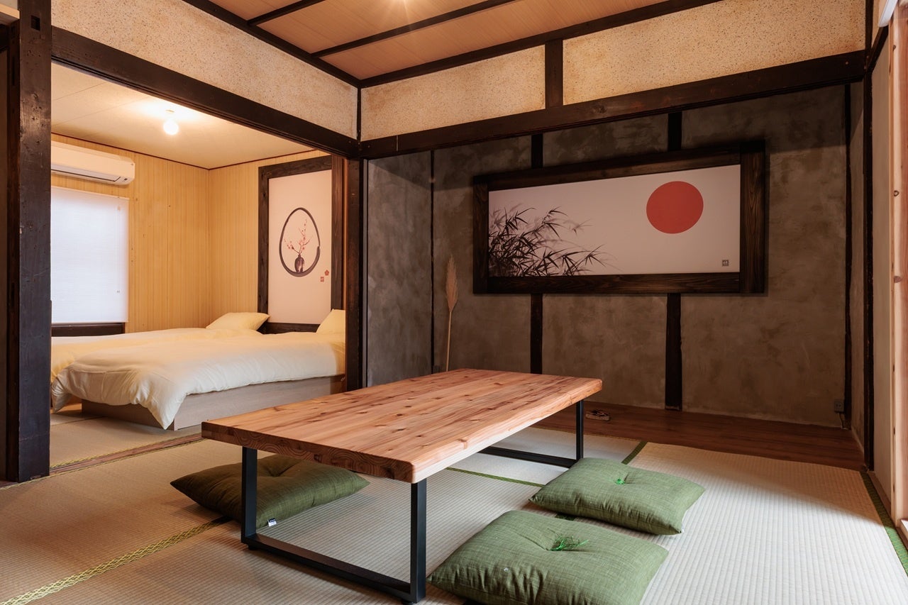 各部屋には、オーナーであるオーシャンテクノロジー社が手がける高品質な印刷技術を活かした和風のアート作品を設置。この宿のために制作された一点一点が、空間に深みと個性を与えています。