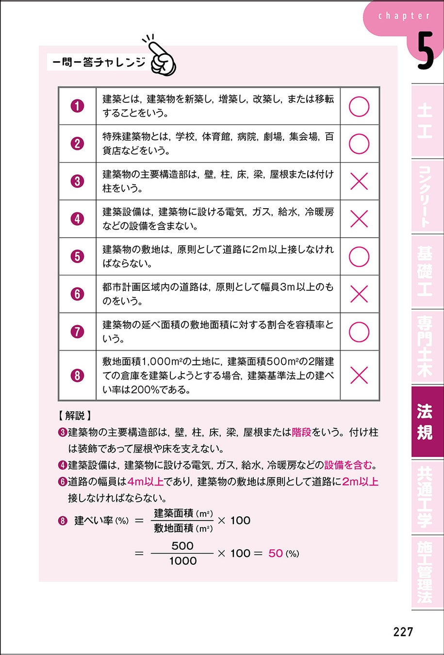 各項目のはじめに用意した「要点整理」のページには、確実に覚えておきたい頻出ポイントを厳選しました。学習前の頭の整理だけでなく、赤シートを併用して試験直前の仕上げや確認にも利用できます。
