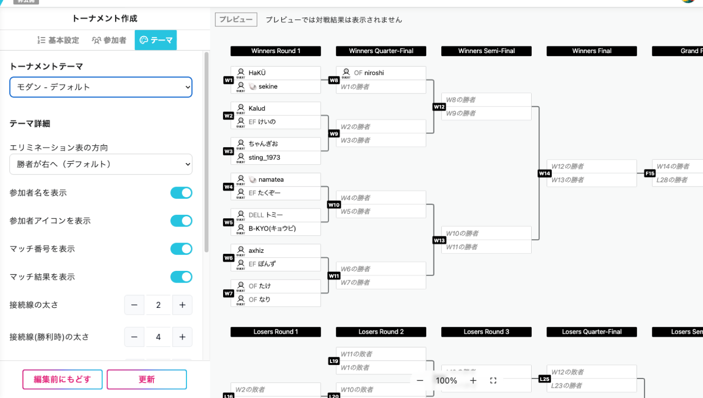 【OFTN.GG(ベータ版)】トーナメント作成の新機能追加!即時プレビュー機能と、トーナメント形式のカスタマイズが可能に