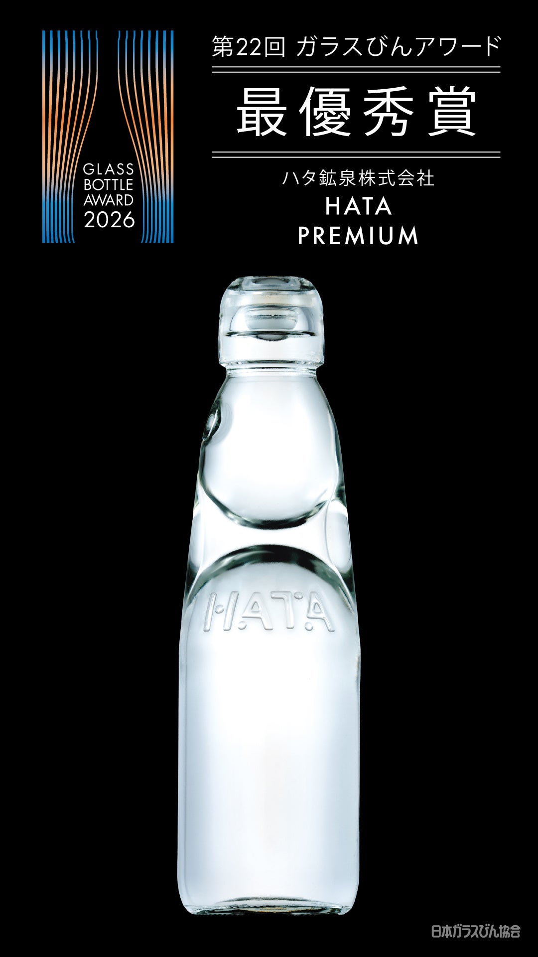 ハタ鉱泉株式会社(本社:大阪市都島区、代表取締役社長:秦 啓員)は日本ガラスびん協会が主催する「第22回ガラスびんアワード 2026」で総エントリー数161件(212本)の中から最優秀賞を受賞いたしました。