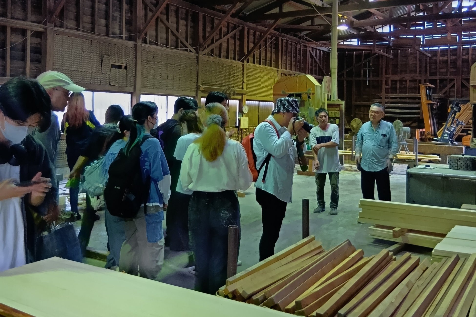 代表の速水亨氏から森林の多面的な役割や持続可能な森林経営について学び、豊かな生態系を維持する「針広混交林施業」を見学しました。また、加工流通を対象としたFSC COC認証を取得している塩崎商店では製材の工程を見学し、木材の特性や森とのつながりを体験しました。