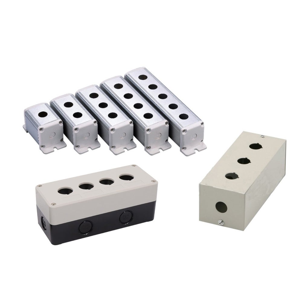 φ16・φ22のスイッチ、ブザー、表示灯をラインナップしています。 5色以上のカラーバリエーションと、5種類の接点構成から選択可能です。 形状は平形・突出形・大形を用意しており、防護等級IP65に対応しているため、防塵・防水用途にも適しています。