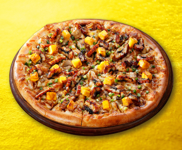 香ばしいうなぎととろけるチーズの黄金の競演。特製うなぎのたれが深みある旨さを導き出す――金色に輝く贅沢の極み、太閤の饗宴ピザ、ここに降臨。