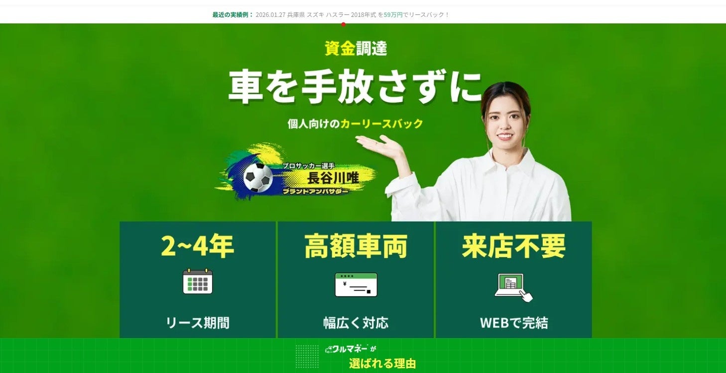 これまでのSNS運用やオウンドメディアを通じたきめ細やかな情報発信に加え、2025年後半からはチャネルを多角化。TBSラジオでのCM放送や、世界を舞台に活躍するプロサッカー選手・長谷川唯選手の「クルマネー ブランドアンバサダー」就任など、ブランドの信頼性を高める施策を戦略的に展開してまいりました。