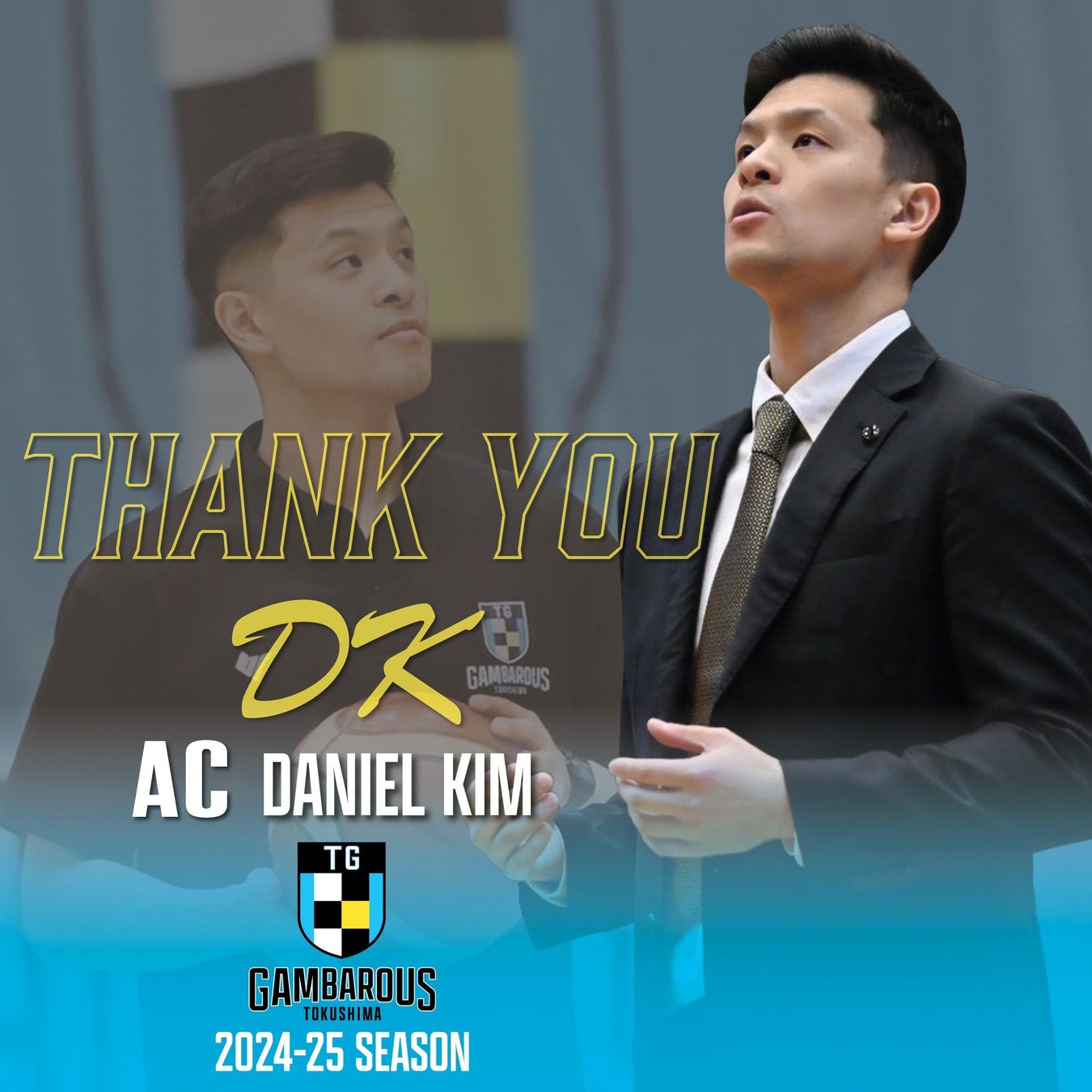 徳島ガンバロウズは、ダニエル・キム アシスタントコーチとの契約が2024-25シーズンをもって満了となりますのでお知らせします。