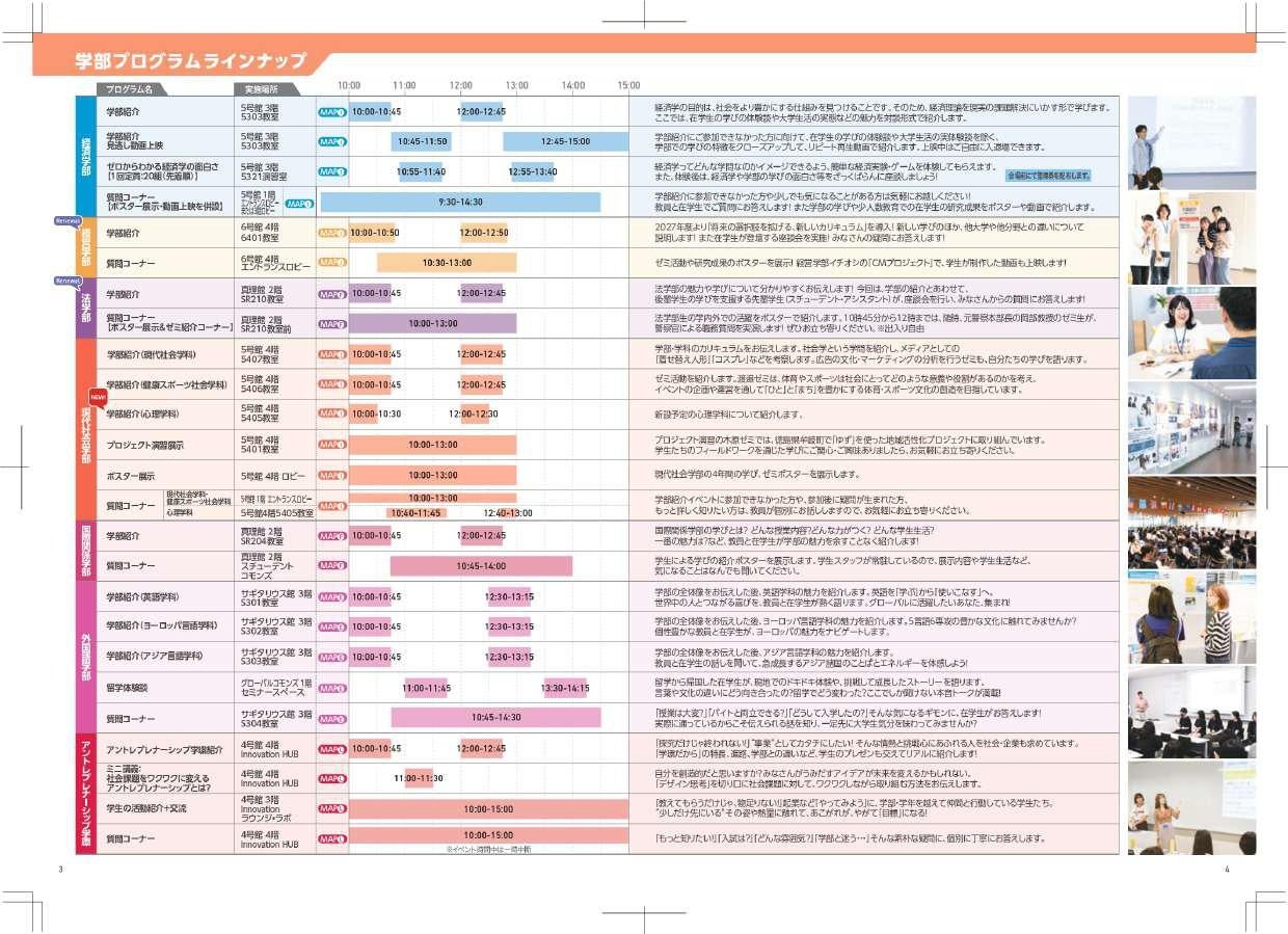 本イベントでは、2027年度入試に向けた最新情報をはじめ10学部・1学環それぞれの学びの特色や魅力を体感できる多彩なプログラムを実施します。高校生や受験生、保護者の皆さまに、進路選択の参考としていただける内容となっております。