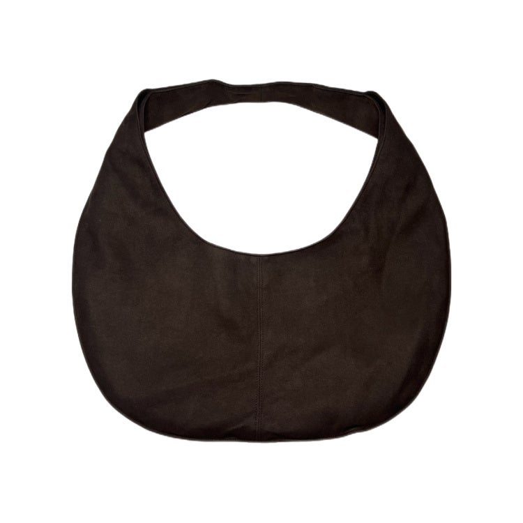特注のダークブラウンカラーで、アウターの上からも肩掛けで使用できるようショルダーストラップが長めに制作されています。