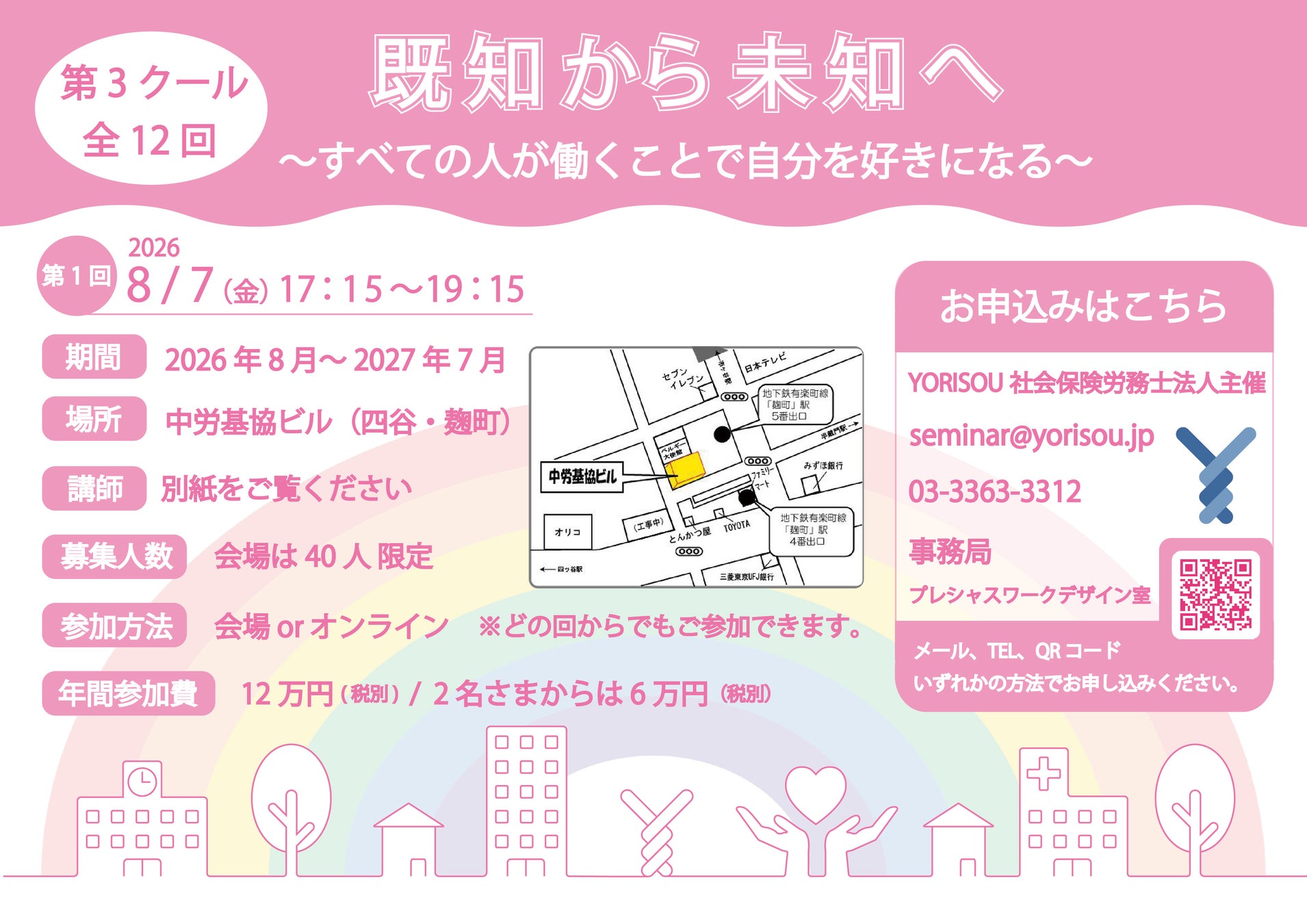 YORISOU社会保険労務士法人(東京都中野区)は、2026年8月から2027年7月までの1年間にわたり、全12回の連続勉強会「既知から未知へ」第3クールを開催します。
