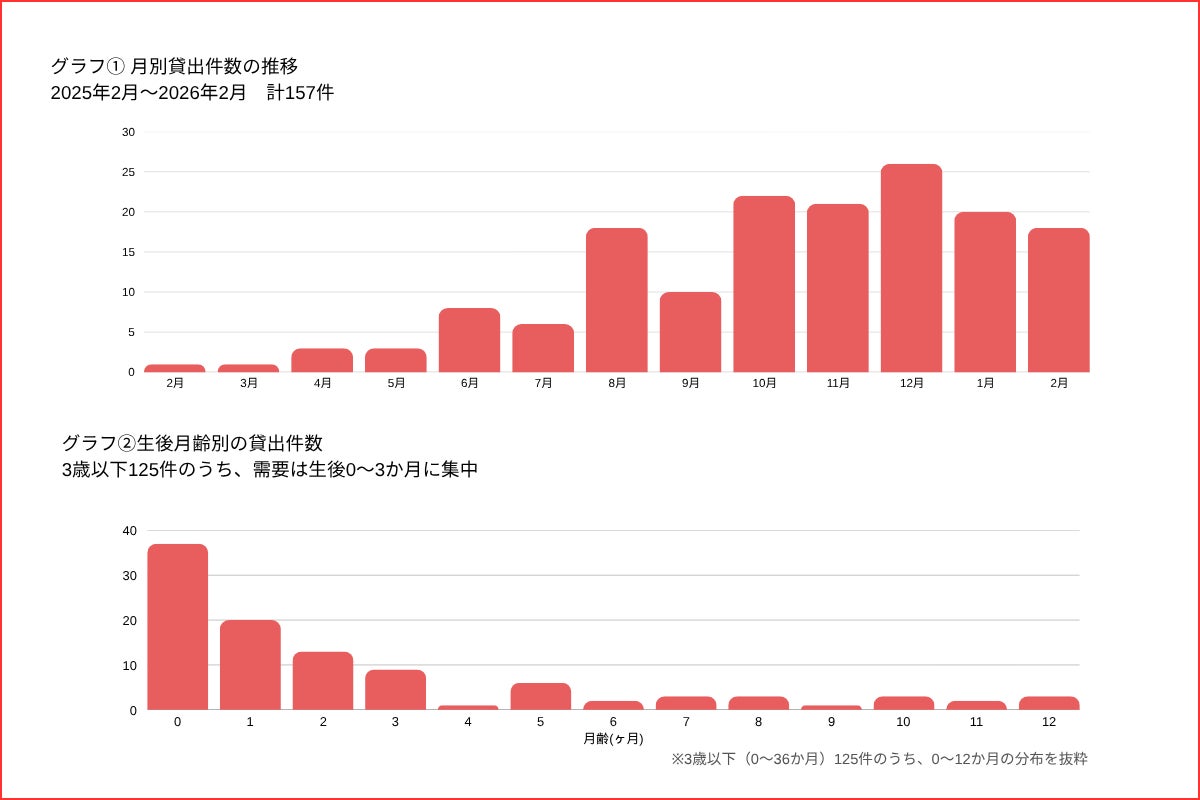 2025年2月に無償貸与事業を開始してから約1年、年間157件の貸出を行いました。