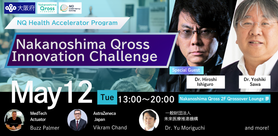 【5月12日】大阪府「NQ Global Startup Gateway」事業Nakanoshima Qross Innovation Challenge開催!ライフサイエンススタートアップ16社集結