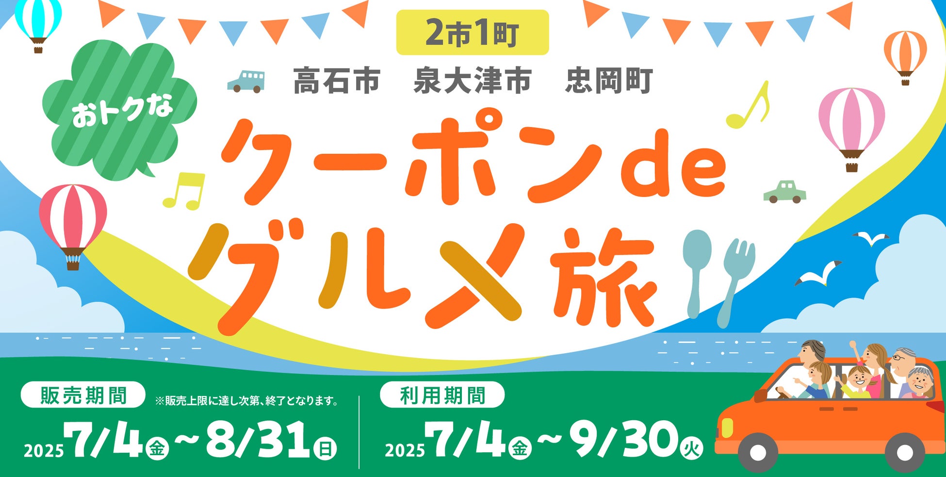 2市1町 おトクなクーポンdeグルメ旅(高石市・泉大津市・忠岡町)が始まります