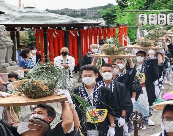 お馬流しとは、本牧神社例祭の特殊神事で、永禄9年(1556)に始まり、今年で第460回を迎える伝統行事です。茅で作った馬首亀体の「お馬さま」に町中の災いや穢れを託し、大海原へ祓い流すことで、天災回避や悪疫退散を祈ります。古式ゆかしい形を今に伝え、神奈川県指定無形民俗文化財にも登録されています。国際港・横浜を代表する夏祭りとして、浜方と陸方がそれぞれの役割を果たし、町をあげて奉仕します。神事は厳粛に執り行われますが、同時に盆踊りや神輿渡御などの神賑わいも行われ、地域の絆を深める場ともなっています。本牧の人々にとっては「心の原風景」ともいえる祭りであり、「本牧の夏はお馬流しの夏」と言われるほど深く根付いています。