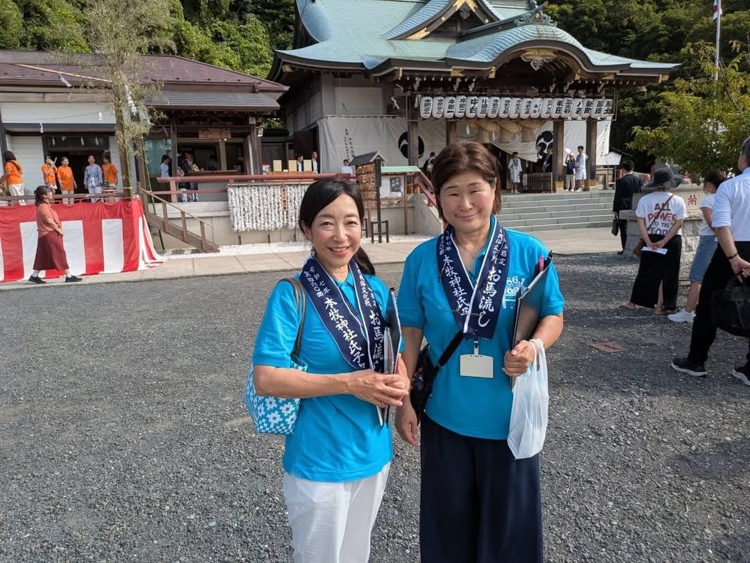 町内18地点を巡る行列に合わせ、スタジオと現地を交互につなぐ実況体制が組まれ、奉納神楽や巫女舞、神輿渡御、船上で馬を駆け込む「せめ」の場面まで、行事の一部始終を臨場感たっぷりにリポート。参加者の声や地域の歴史に触れるインタビューも交えながら、まちの息づかいを“声”で届ける放送となりました。今年のテーマ「一心一意」に込められた、“守り抜くべきものを未来へつなぐ”という想いも随所で紹介。リポートを通じて、神社と町が心を一つに結び、祈りと喜びを共有する様子が、ラジオ越しにも鮮やかに伝わりました。「代々受け継がれてきたものを絶やさず、これからも続けていくために、こうして形に残して伝えてくれることが、何よりもうれしく、ありがたく思います」といった声も寄せられました。