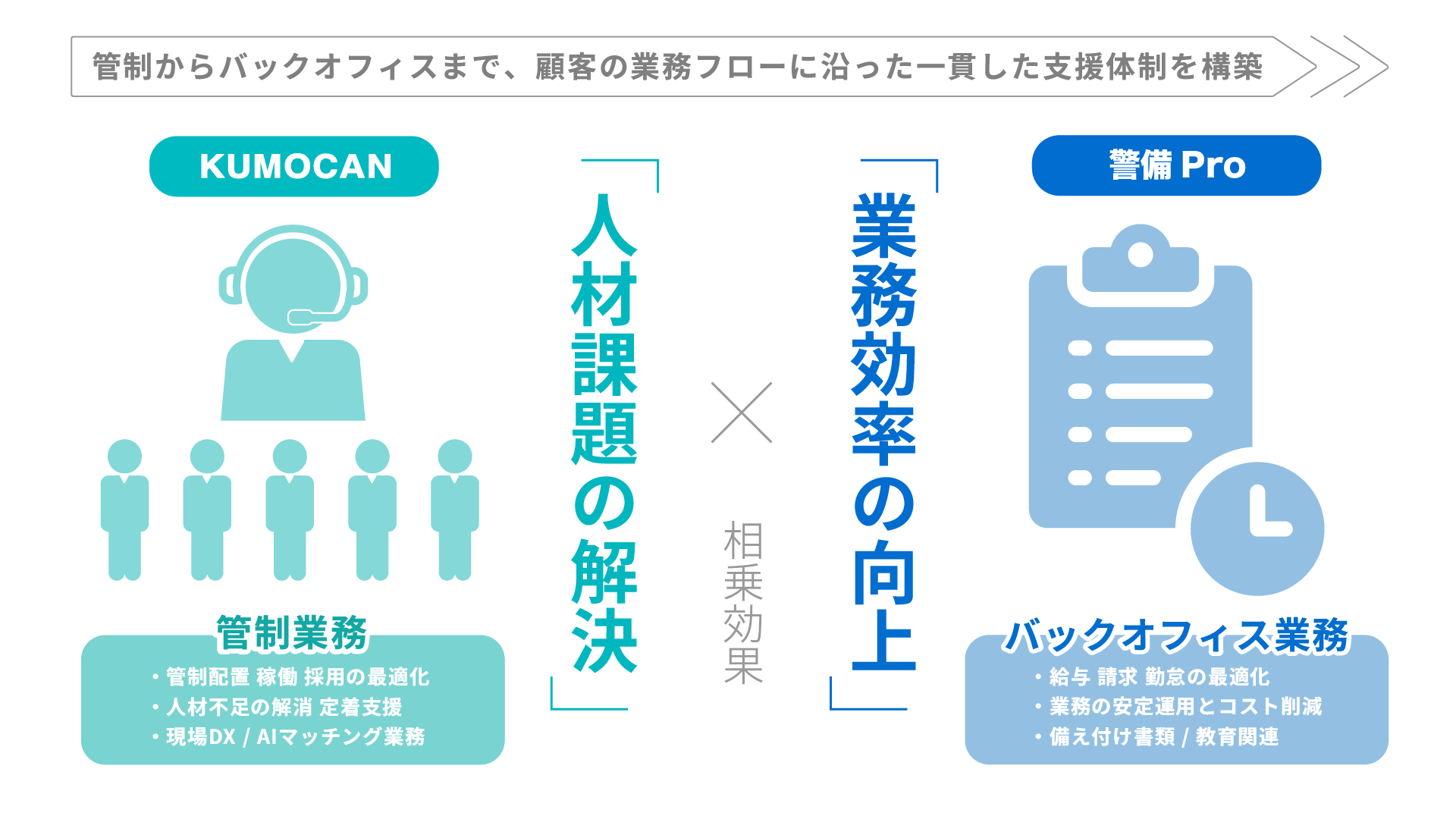 警備業界向けバックオフィスシステム「警備Pro」と、警備業界専門のクラウド管制システム「KUMOCAN」において、警備業界で唯一となるシステム連携を開始いたしました。