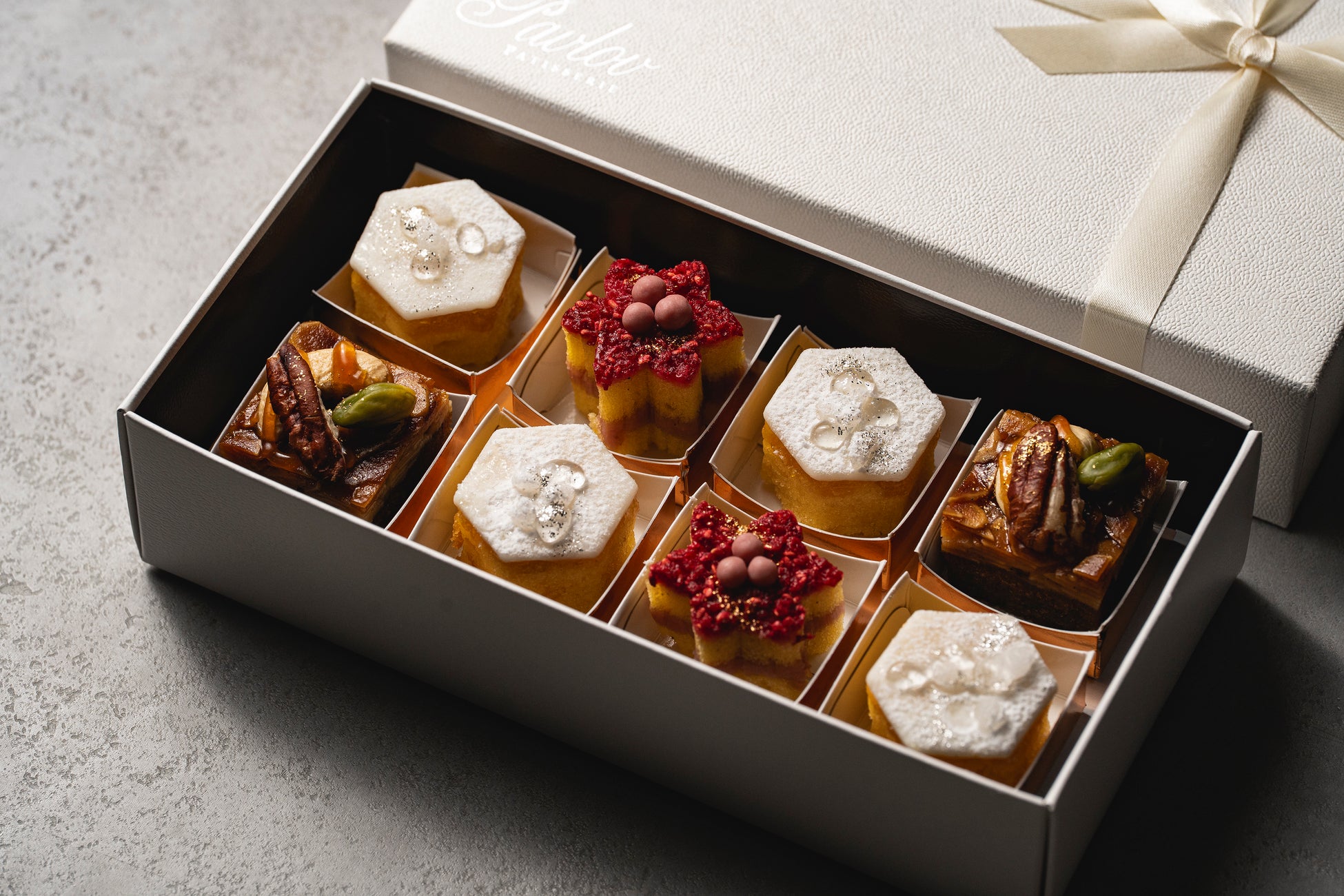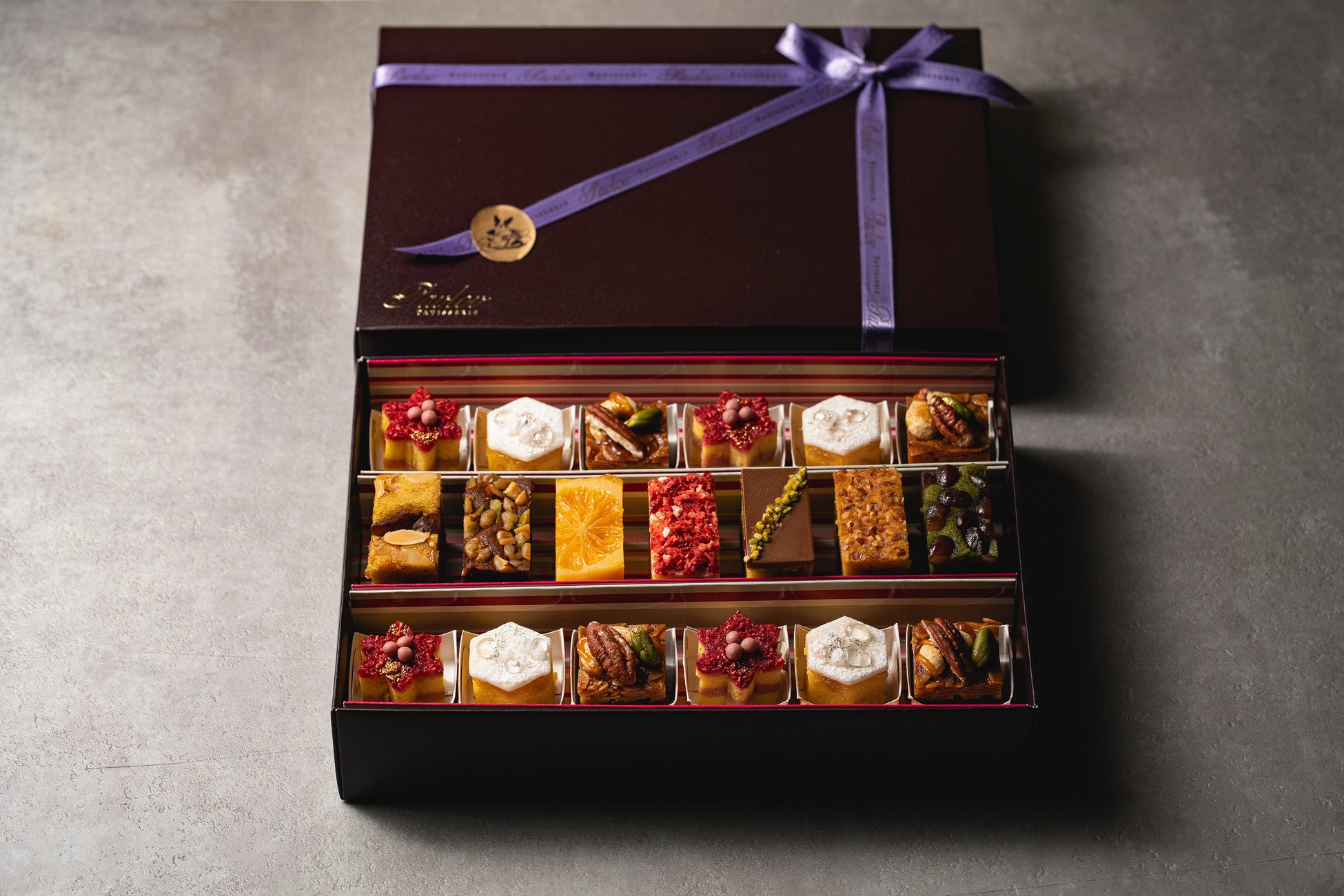人気のオリジナルアソートに、冬限定のプティフールが加わった繊細な飾りがパブロフらしいセットです。粉雪をイメージした、ゆずのパウンドケーキとフリュイルージュのガナッシュをサンドした華やかなポインセチアのパウンドケーキ、重なる落ち葉をイメージした濃厚なキャラメルとぎっしりナッツのパウンドケーキの3種が新登場。お持たせにもぴったりな13個入と19個入のギフトBOXは定番人気のオリジナルパウンドケーキアソート(マロン/チョコレート/オレンジ/バニラフレーズ/ピスタチオショコラ/キャラメルフィグ/抹茶)とセットになっています。心ときめく季節にぴったりの、特別なひと箱です。