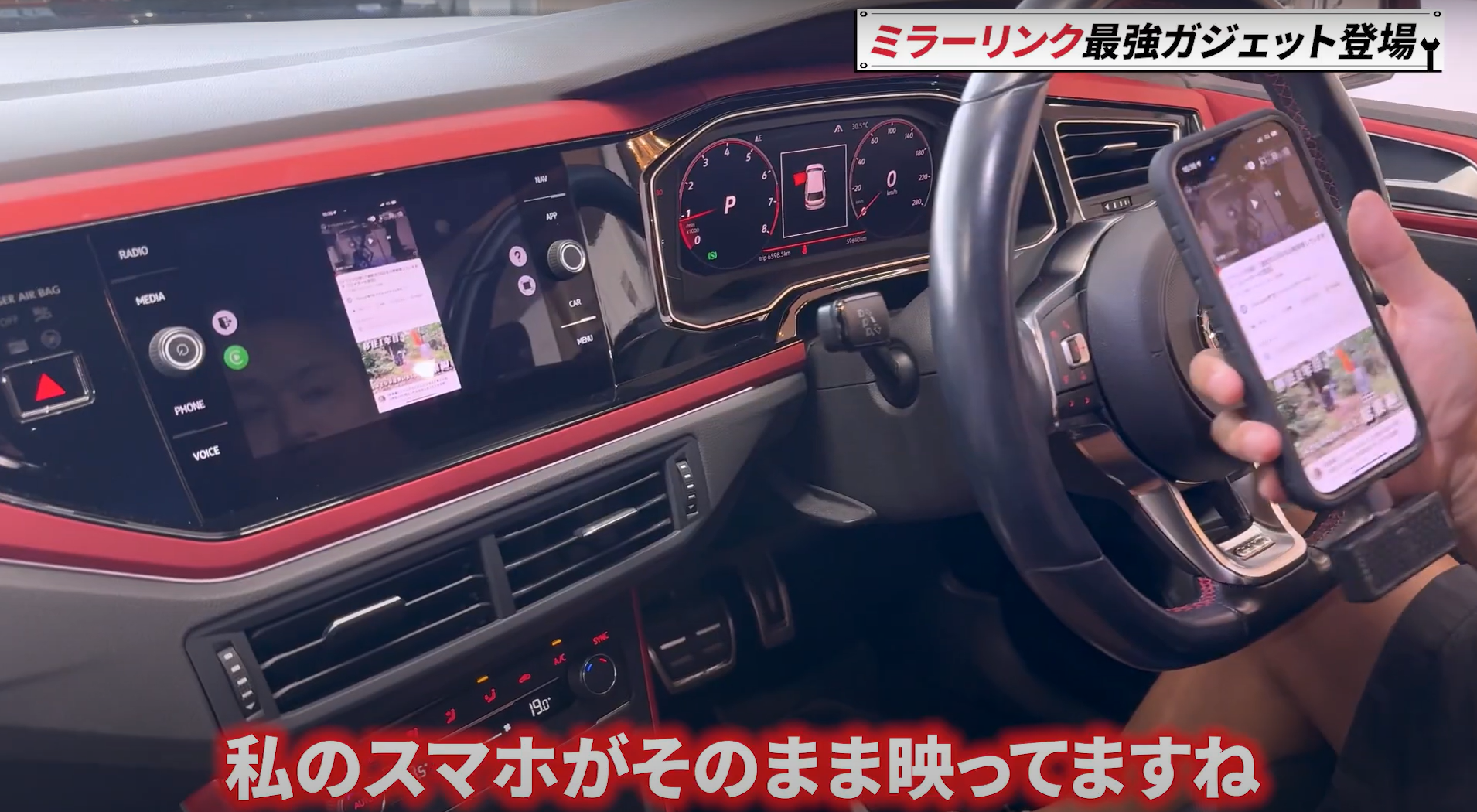 ミラーキャスト/ワイヤレスCarPlayをワンボタンで切替可能。さらに2台のスマホで別機能を同時利用(例:運転席=CarPlayでナビ、助手席=別スマホで動画ミラーリング)も実現。