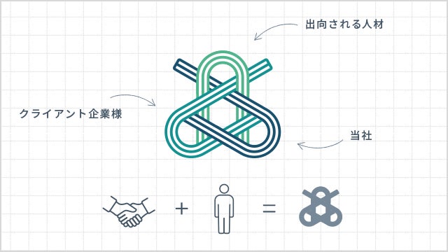 ロゴデザインは、人と人の結びつきを象徴する日本の伝統文化「水引き」をモチーフにしています。クライアント企業様、出向される人材、そして伴走する当社の三者が固く結びつき、共に成長していく姿を表現しました。