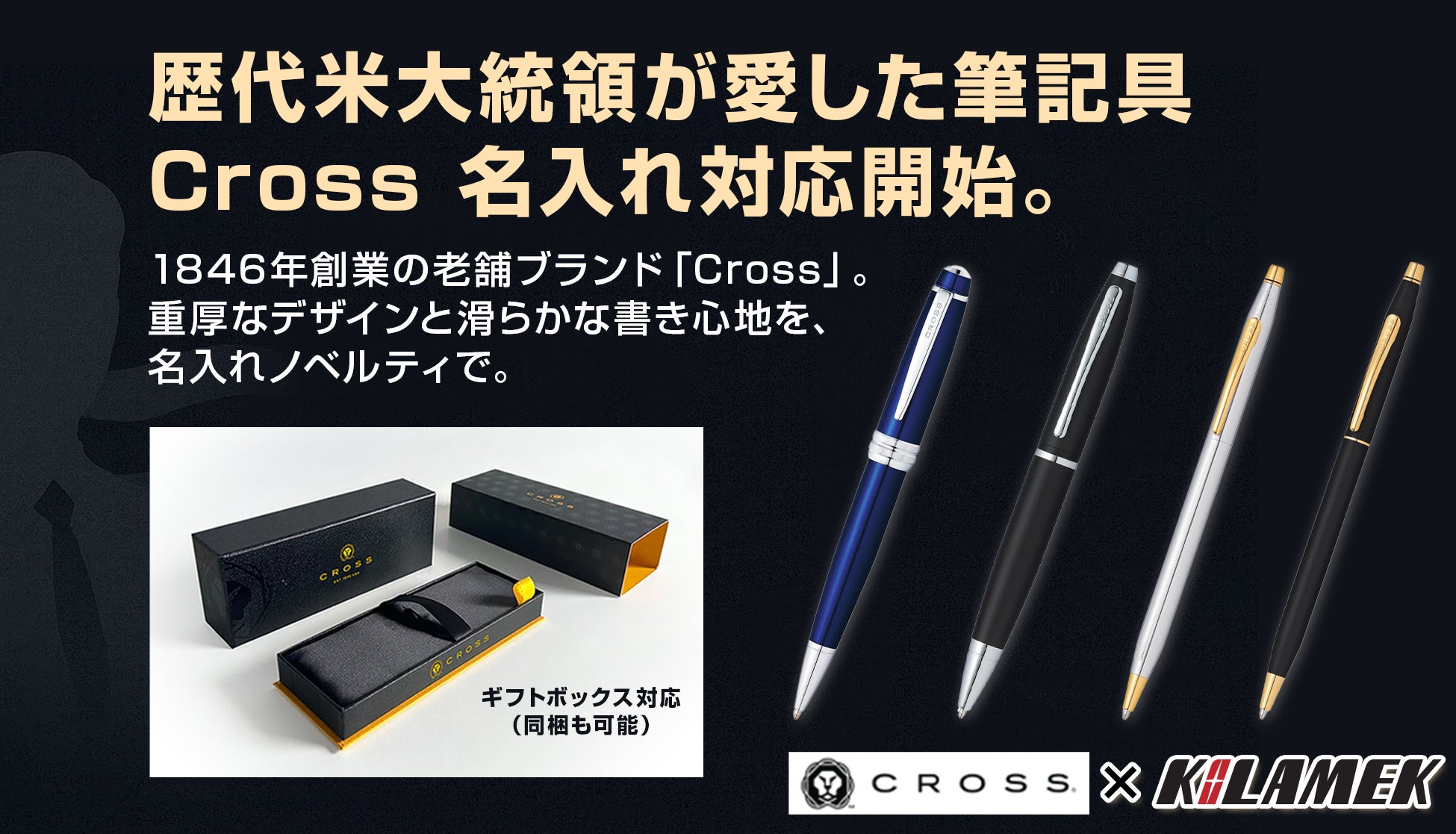株式会社KILAMEK(本社:東京都新宿区)はこのたび、世界的筆記具ブランド「Cross(クロス)」のボールペンを、法人向け名入れノベルティとして取り扱い開始いたしました。