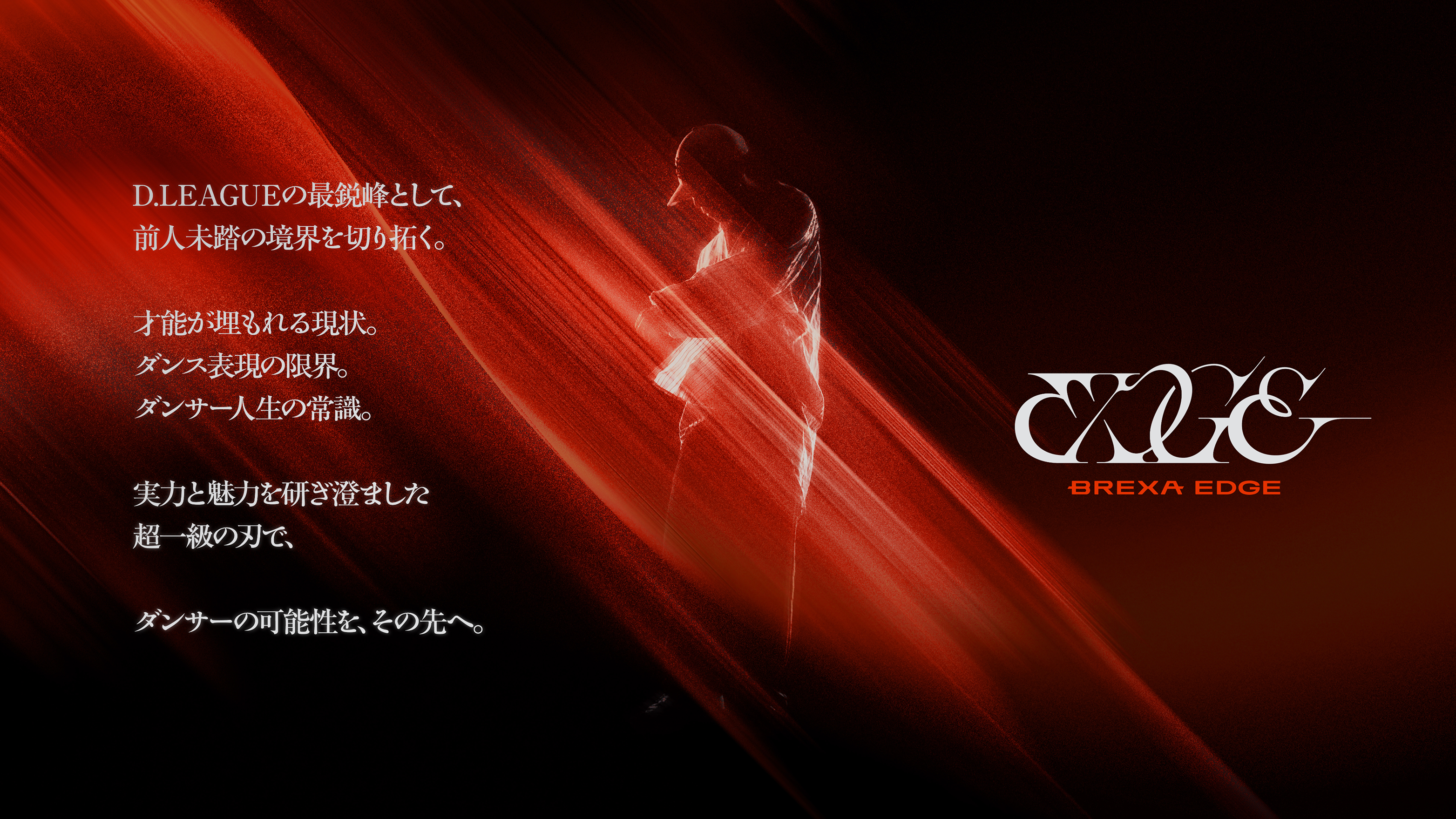 「BREXA EDGE」は、「D.LEAGUE」の最鋭峰として、埋もれたままの才能の発掘や、ダンサー人生の新たな常識といった、ダンス市場における前人未踏の境界を切り拓き、可能性のその先へと突き進みます。