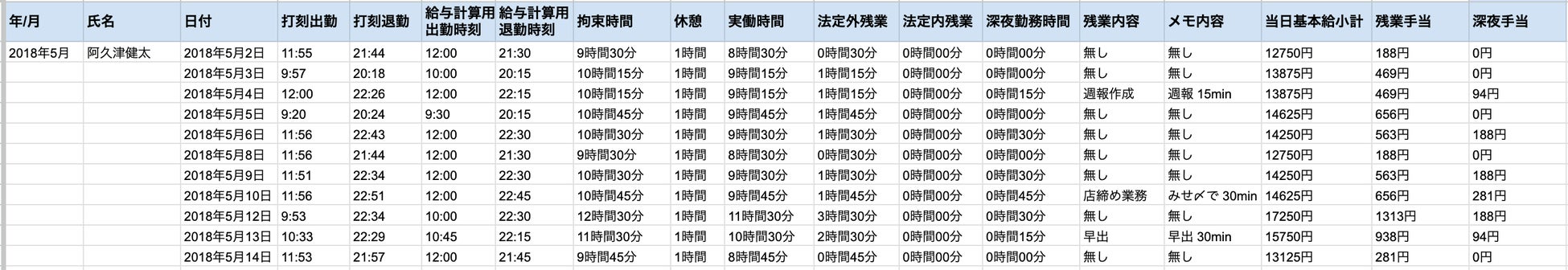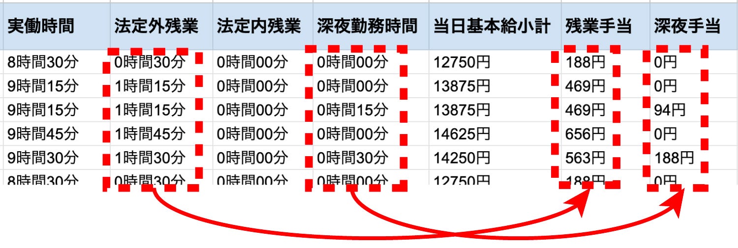 ★法定外残業時間(勤務時間と時間帯から自動計算)