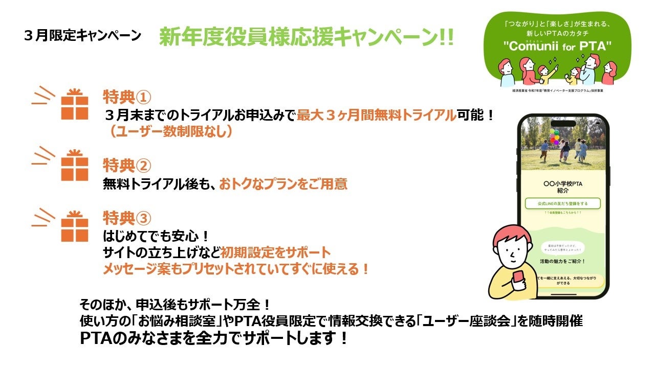 3月限定「Comunii for PTA」新年度役員様応援キャンペーンも実施中!
