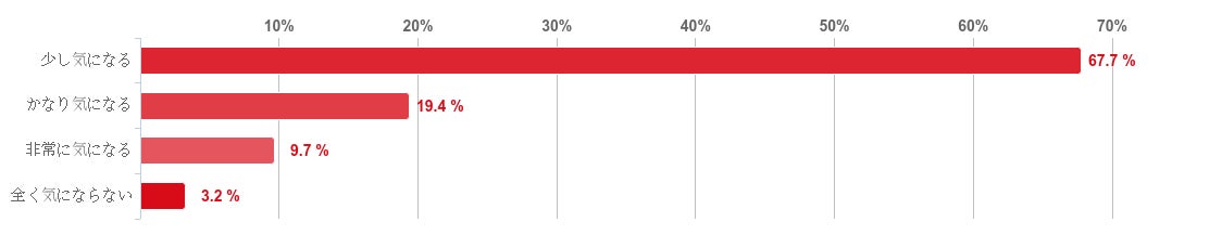 「少し気になる」と回答した人が67.7%と圧倒的に多く、「かなり気になる」(19.4%)と回答した人を大きく上回った。