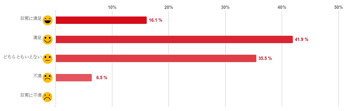 「満足」との回答が41.9%で最も多く、「非常に満足」と回答した人の16.1%を合わせると回答者の過半数が満足しており、Oops HAIRのAGA治療に対する満足度は高めだということがわかった。