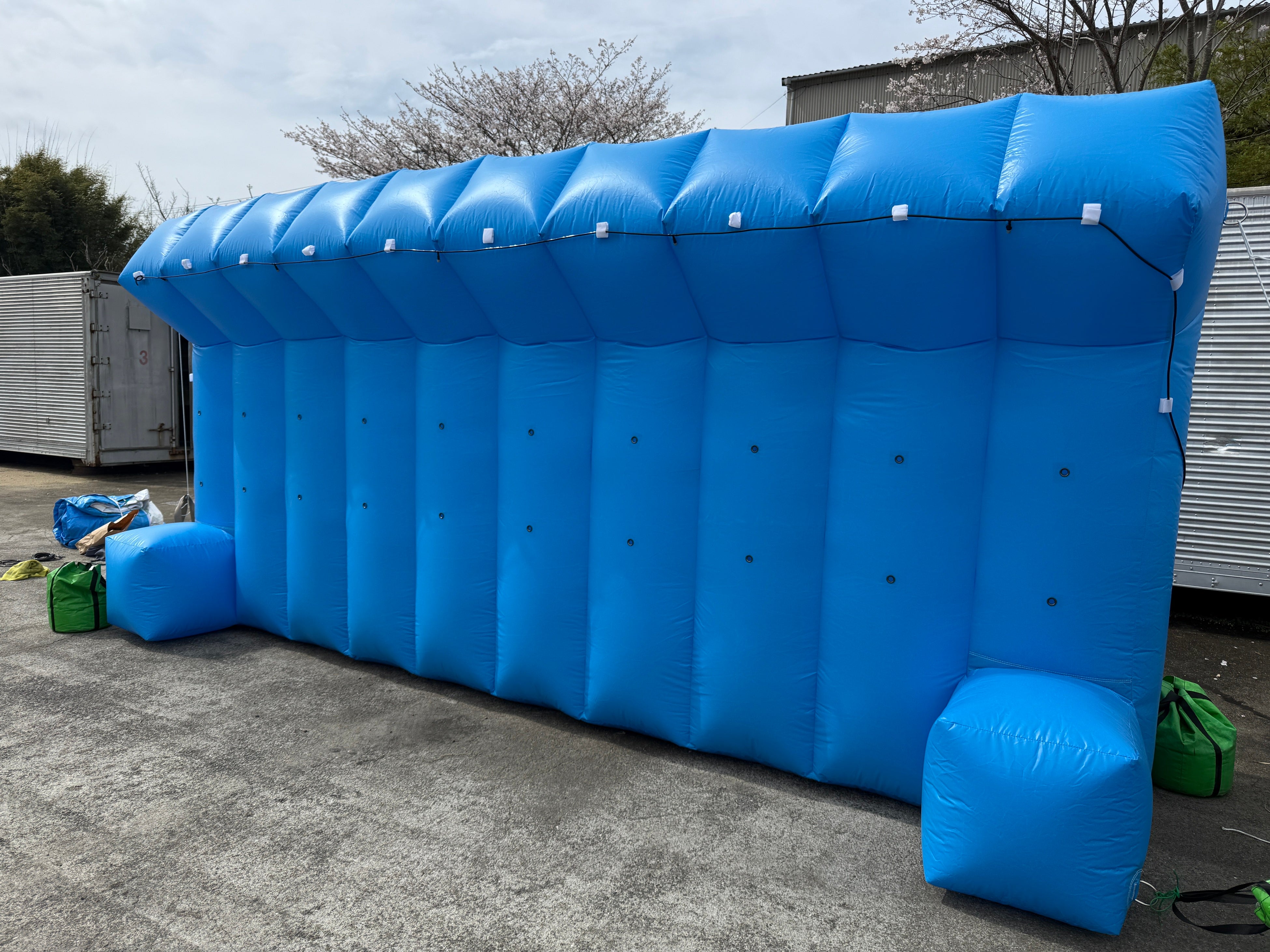 当社の製品は、軽量かつコンパクトに収納でき、必要なときに素早く展開できるのが特徴です。災害時や緊急対応の現場において、従来の資材では実現できなかったスピードと柔軟性を発揮します。また、規格外のサイズが求められる現場であっても、低コストかつ短納期でオリジナル製品を製作・納品することが可能です。