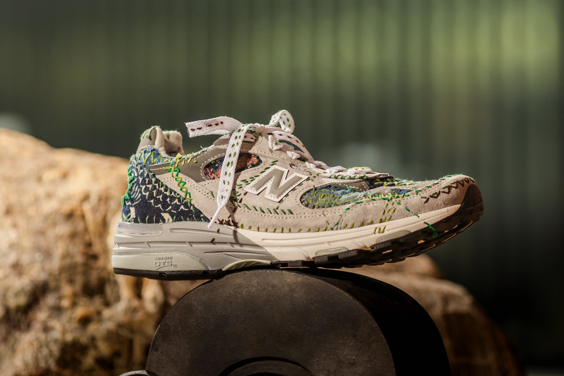 本プロジェクトのために制作されたオリジナルスニーカーは、自然から着想を得た「森」をテーマにデザインされています。ベースには「New Balance 993」のグレーを採用し、SASHIKO GALSを象徴するオリジナル刺し子パターンを施しました。一足ごとに職人が40時間をかけ、手作業で丁寧に刺し子を施した、唯一無二のアートピースです。