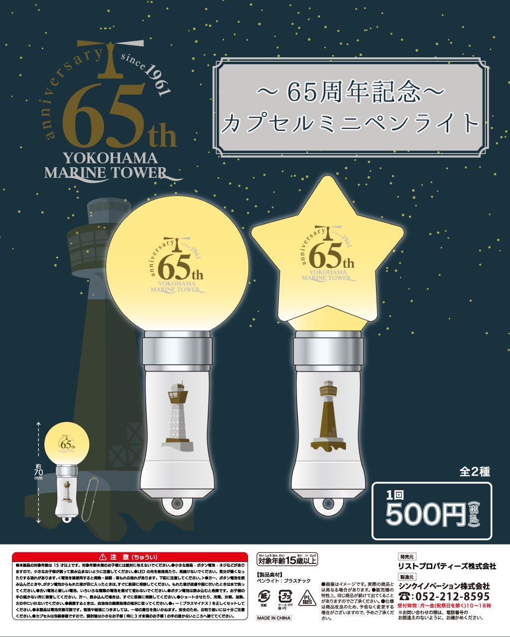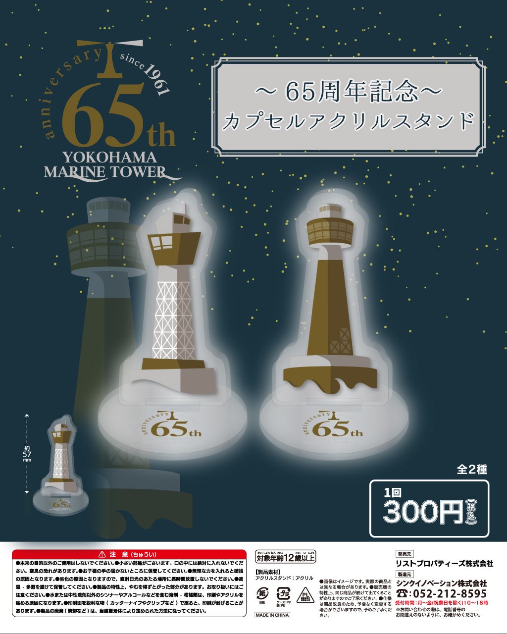 本取り組みでは、65周年を記念した限定ガチャ「マリンガチャ」を設置。横浜マリンタワーならではの世界観を反映したオリジナルアイテム全5種類(各200個限定)を用意し、