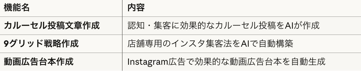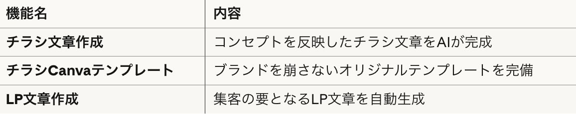 業界特有の集客課題を理解した上で設計されているため、汎用AIツールでは実現できない精度の高いマーケティング素材を生成できます。