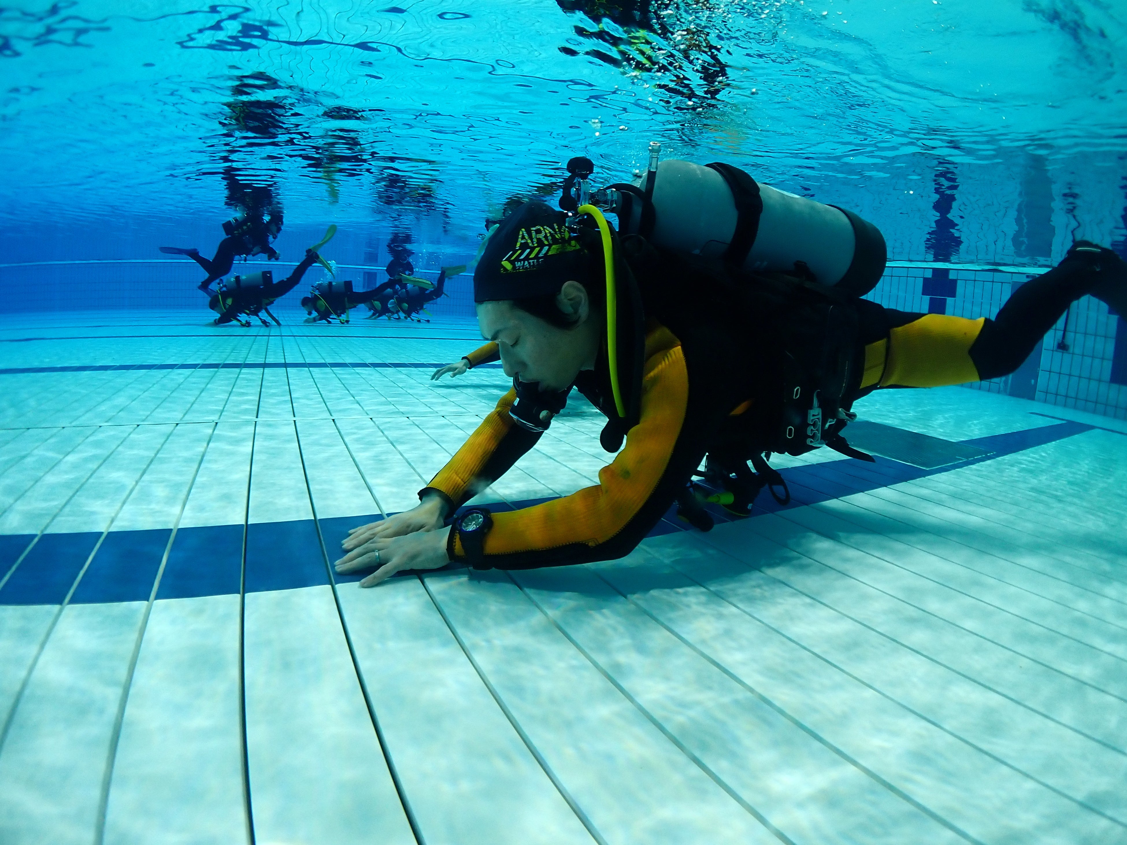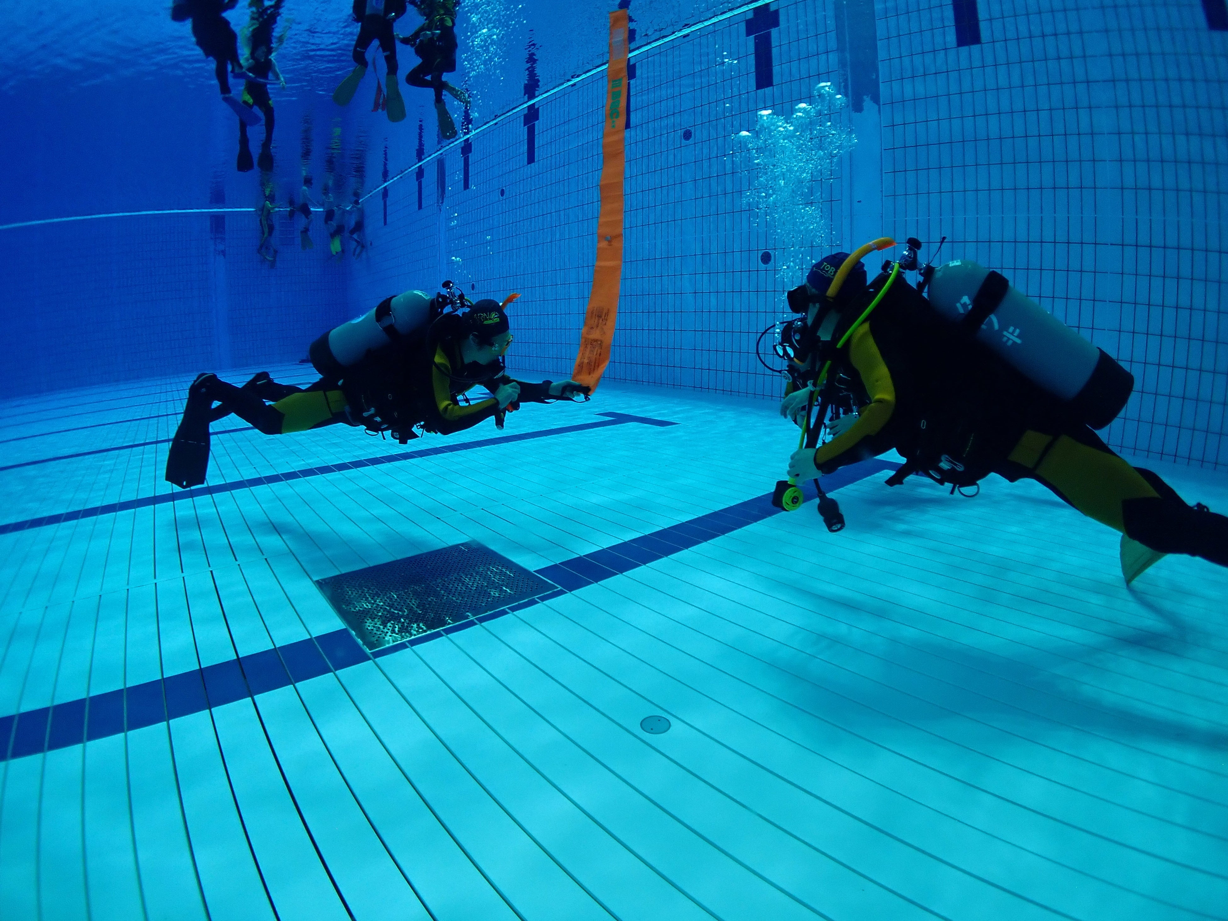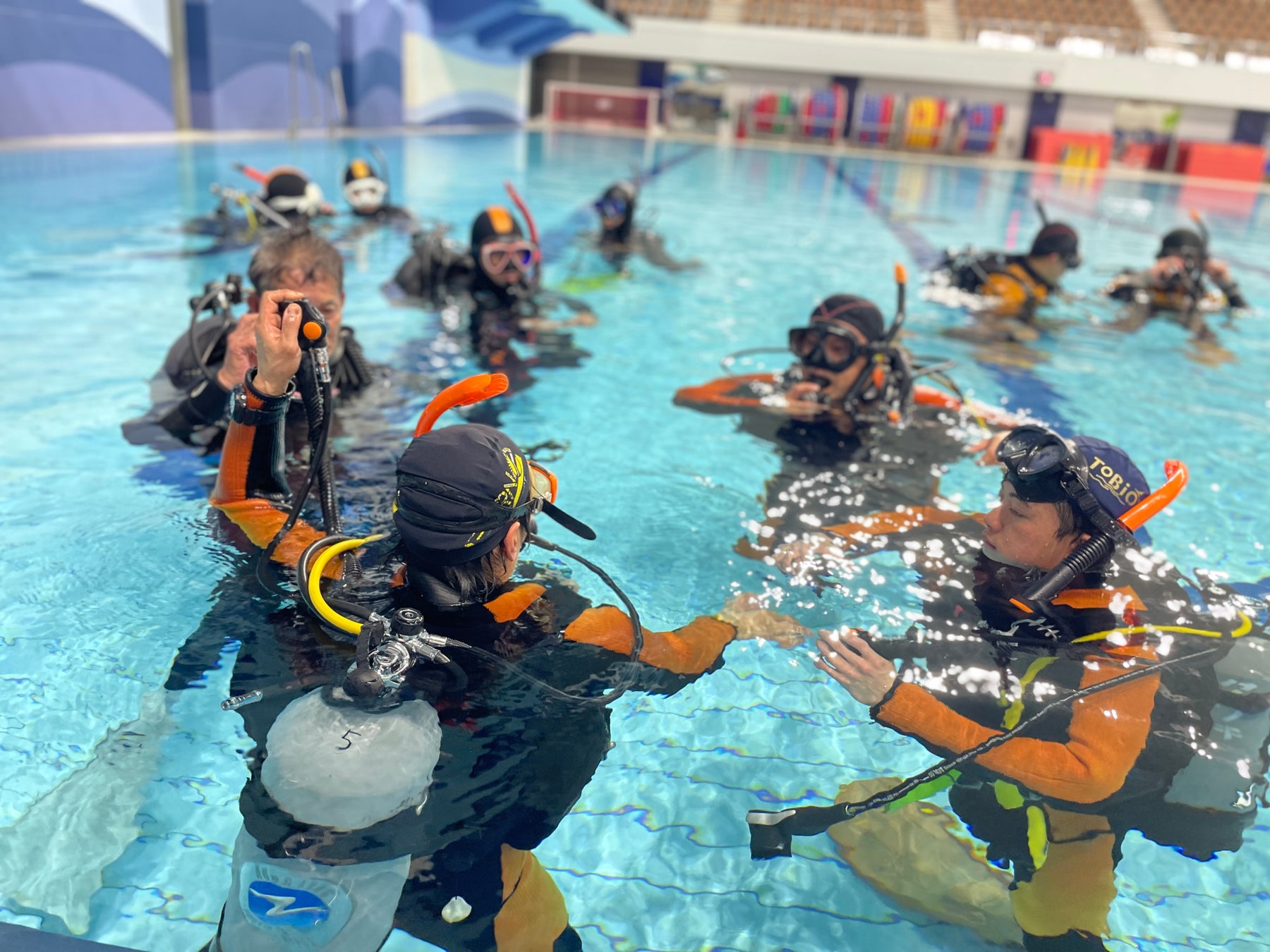 呼吸と浮力のコントロールを中心に、基礎から応用まで段階的に実施。捜索技術やリフト技術の習得を行いました。(1本目は1.5m、2本目は5mに水深を変更)