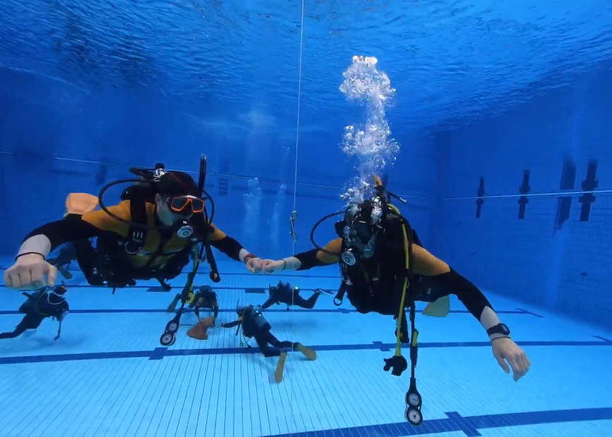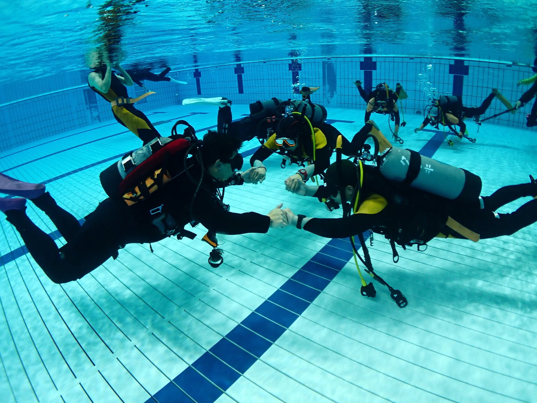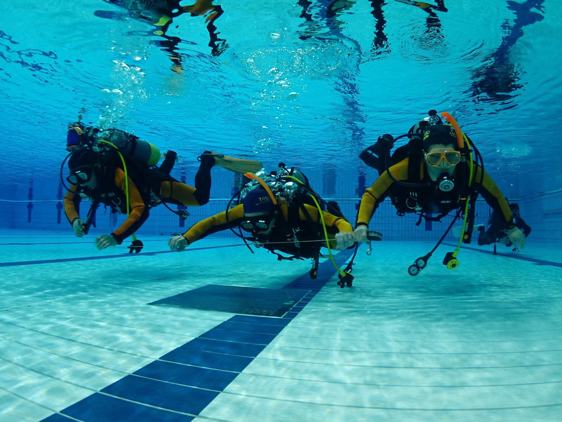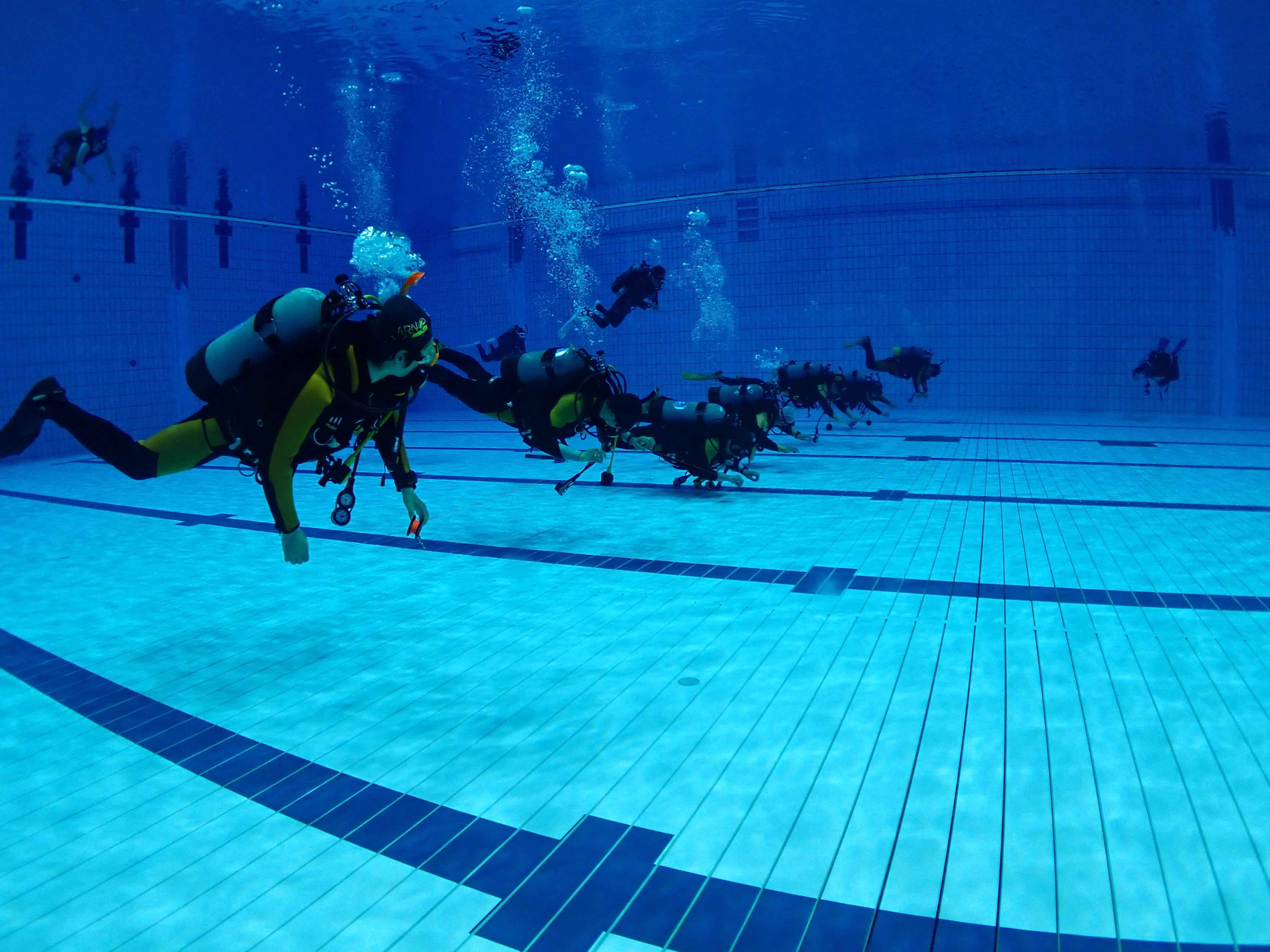 呼吸と浮力のコントロールを中心に、基礎から応用まで段階的に実施。捜索技術やリフト技術の習得を行いました。(1本目は1.5m、2本目は5mに水深を変更)