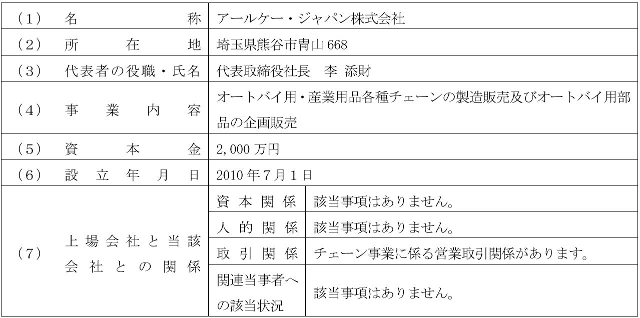 当社、KANA、RK、KCMの4社は、自ら及び自らの関係会社を通じて、産業用チェーン、スプロケット、その他関連製品の分野において、各社の経営資源を相互活用して、製品・技術の開発及び販売の拡大を推進することを目的として、以下の取り組みを進めてまいります。