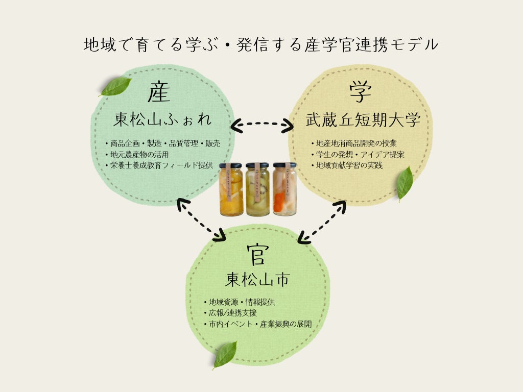 地元農産物を活かした食と健康の取り組みを行う株式会社島野造園(本社:埼玉県東松山市、代表取締役:島野秀夫)が展開する「緑育けんこうステーション東松山ふぉれ」 (以下、東松山ふぉれ / 代表:島野僚子)は、東松山市および武蔵丘短期大学と産学官連携協定を締結しました。本協定に基づく教育支援事業「地産地消商品開発」授業から、学生の学びをもとに誕生した新商品『まなぶピクルス』が完成しました。