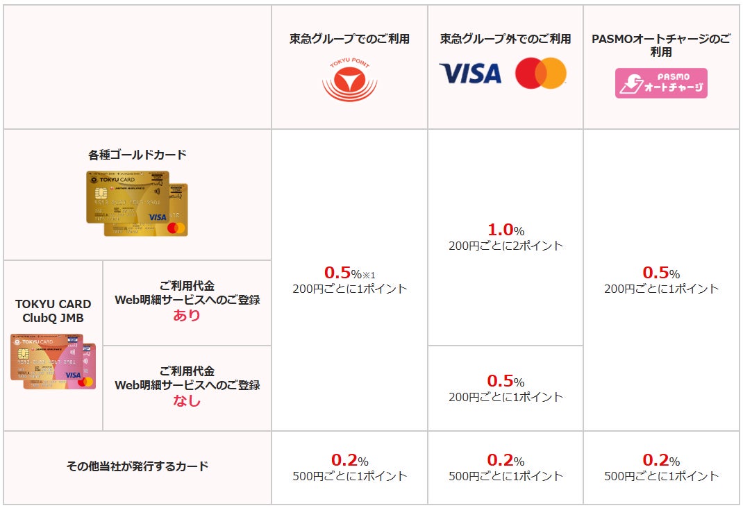 ※1 東急グループのショッピングセンターなどの一部の施設・サービスでは税込100円ごとに1ポイント