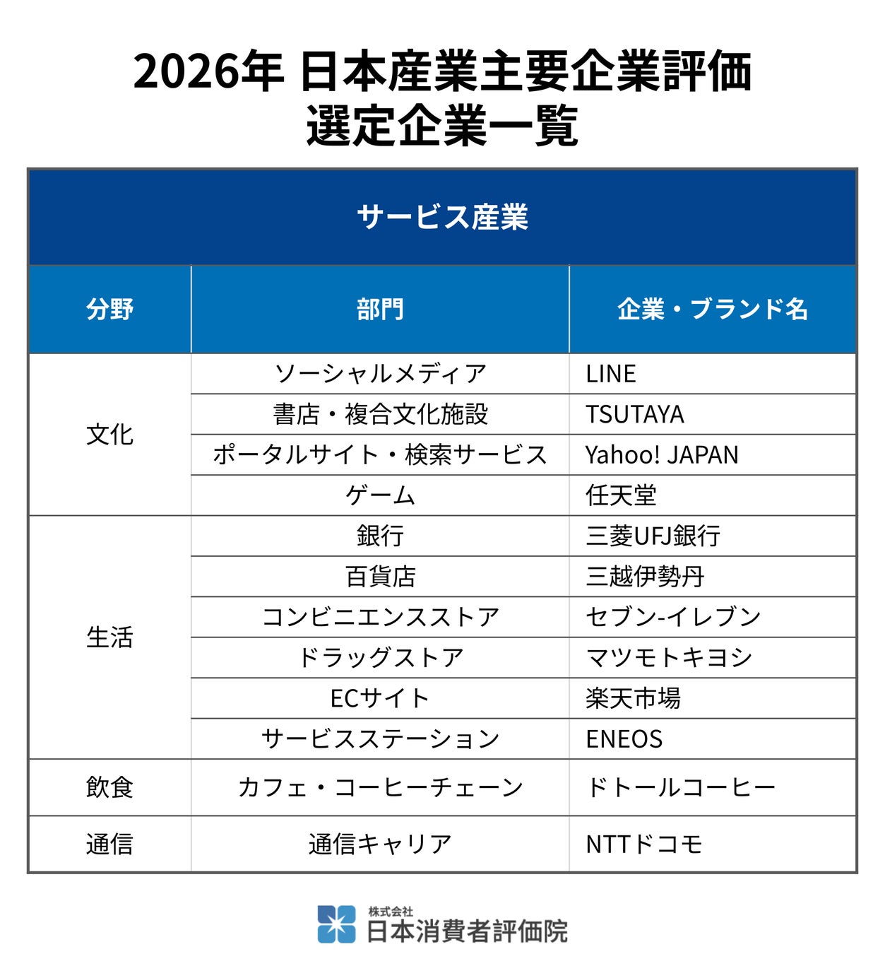 【2026年 日本産業主要企業評価(サービス産業部門)選定企業一覧】