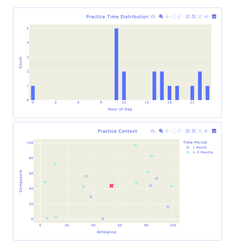 あなたのプラクティスの姿勢・頻度・継続性・発話のクセ、そして多様な周辺コンテクストを捉え、練習の質を視覚的にフィードバック。これまで見えなかった現象・原因・因果・成長を〈見える化〉。