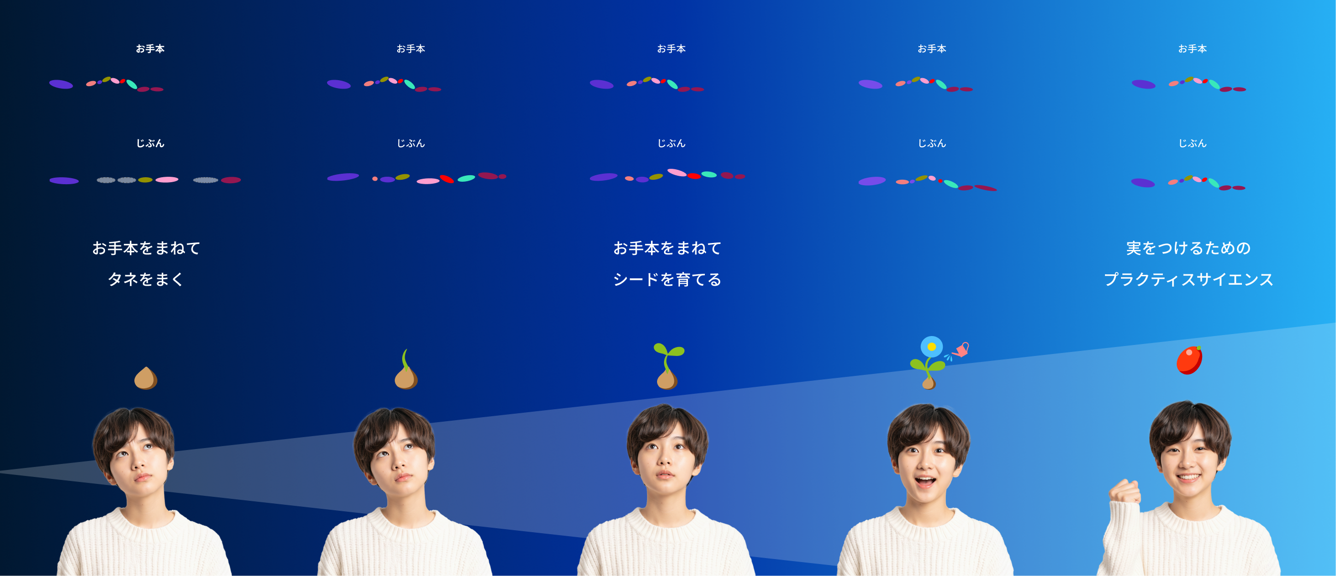 日々のプラクティスや助け合いの中で獲得し、じぶんの〈シード〉に水やりをしてアドバイスを受けたい時、チャレンジしたい時、学びを深めたい時、仲間を支えたい時、生徒を励ましたい時など、いつでも使えます。