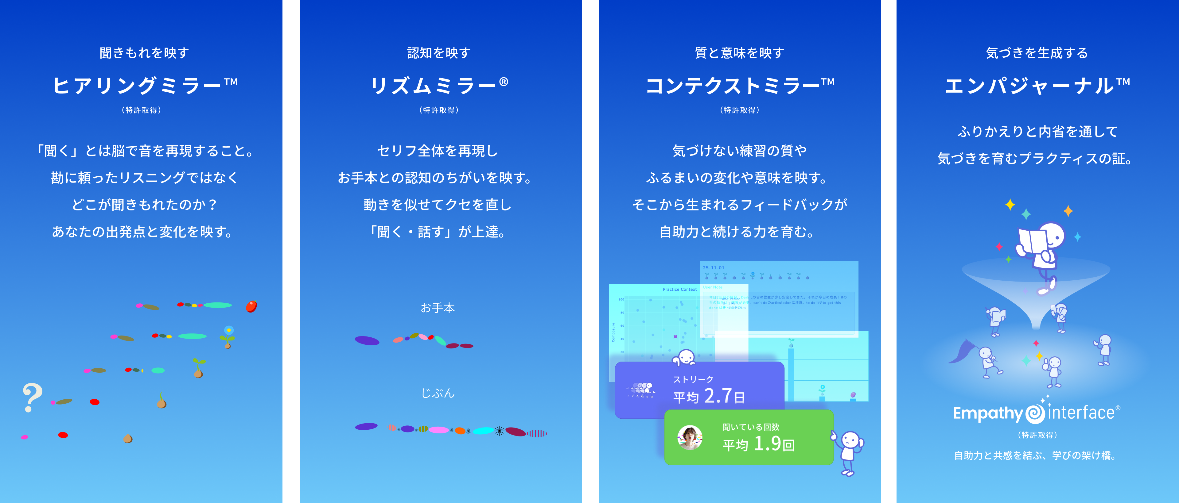SomniQ株式会社(東京都千代田区、代表取締役CEO 坂口立考)は、〈人×AI〉の共創によって学びを進化させる英語学習システム「エンパシーム英語耳°トレイル」(アプリとダッシュボード)を本日リリースしました。本システムは、認知とプラクティスの〈見える化〉を実現する発明特許テクノロジーを基盤にした 「Empathy Interface」によって、学習者のプラクティスとエデュケーターを相互に結び、研究者も参加することで進化が加速する、共創的な新しい〈学びのしくみ〉を提供します。このしくみを、英語に携わるすべての人──学ぶ人・教える人・支える人・研究する人へ向けて展開していきます。