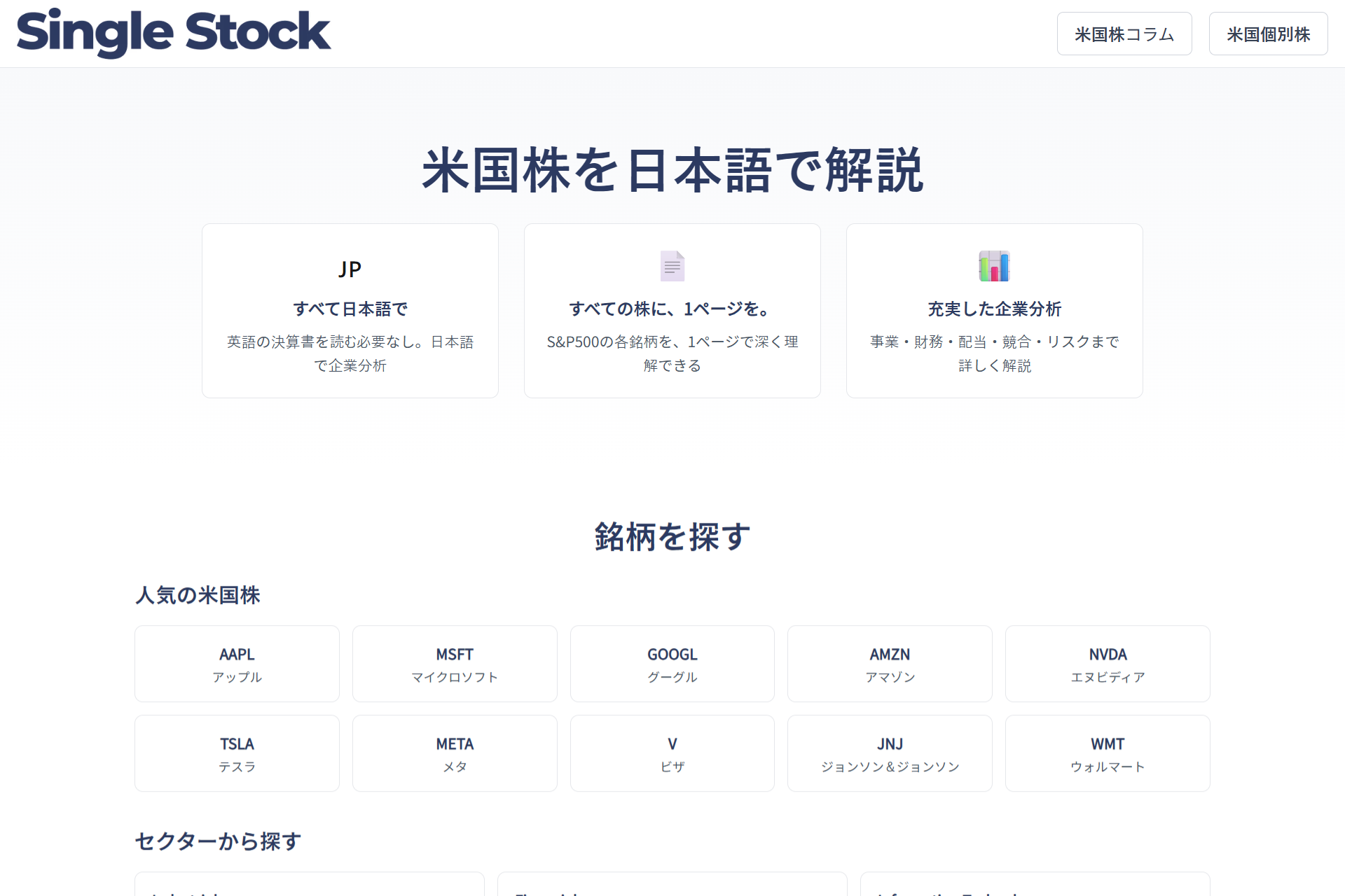 米国株の"検討の入口"を軽くする――S&P500を日本語1ページで俯瞰できる『Single Stock』正式リリース