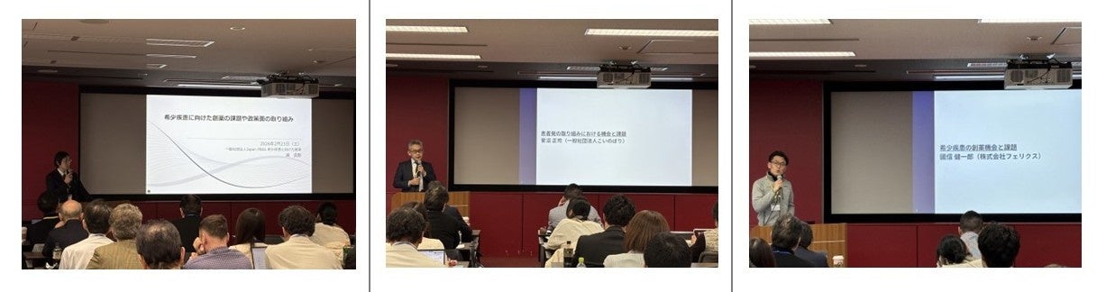 本イベントは、企業、アカデミア、医療機関、患者団体、スタートアップ、投資家、政策関係者など、創薬を取り巻く多様な立場の関係者が集い、希少疾患創薬の現状や課題について対話を通じて考える場として企画されたものです。当日は現地で100名以上、オンラインでも70名以上の皆様にご参加いただきました。